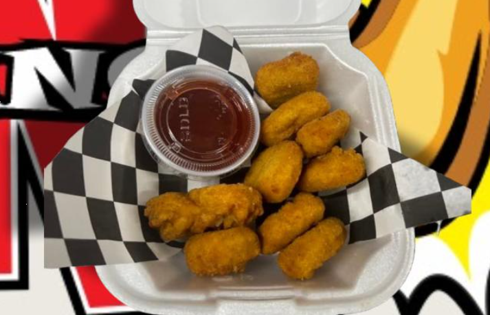 Boneless, papas de gajo, papas a la francesa, aros de cebolla, chile caribe, elote, dedos de queso, zanahoria, apio y ranch.