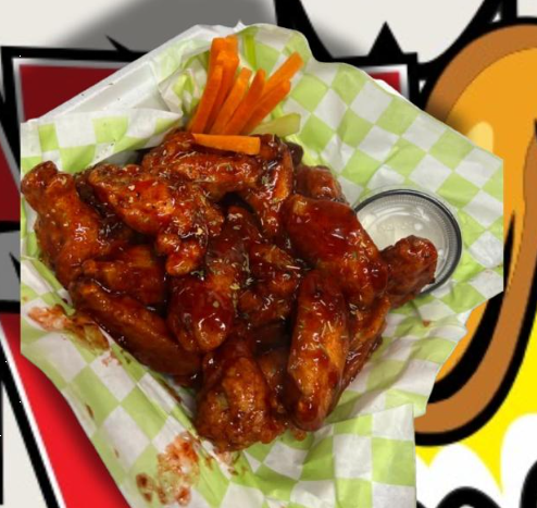 1 Orden de alitas, zanahoria, apio y ranch.