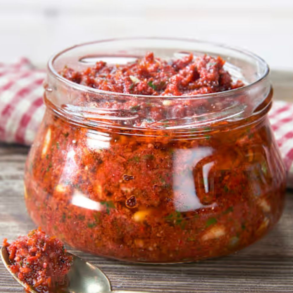 Aceite vegetal, Chile morita, Chile habanero, Ajonjoli y Chile Guajillo.