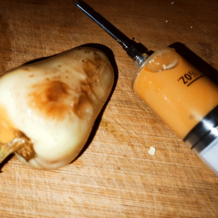 Chile güero a la plancha, relleno con 1 oz de Queso de nachos, sazonado.