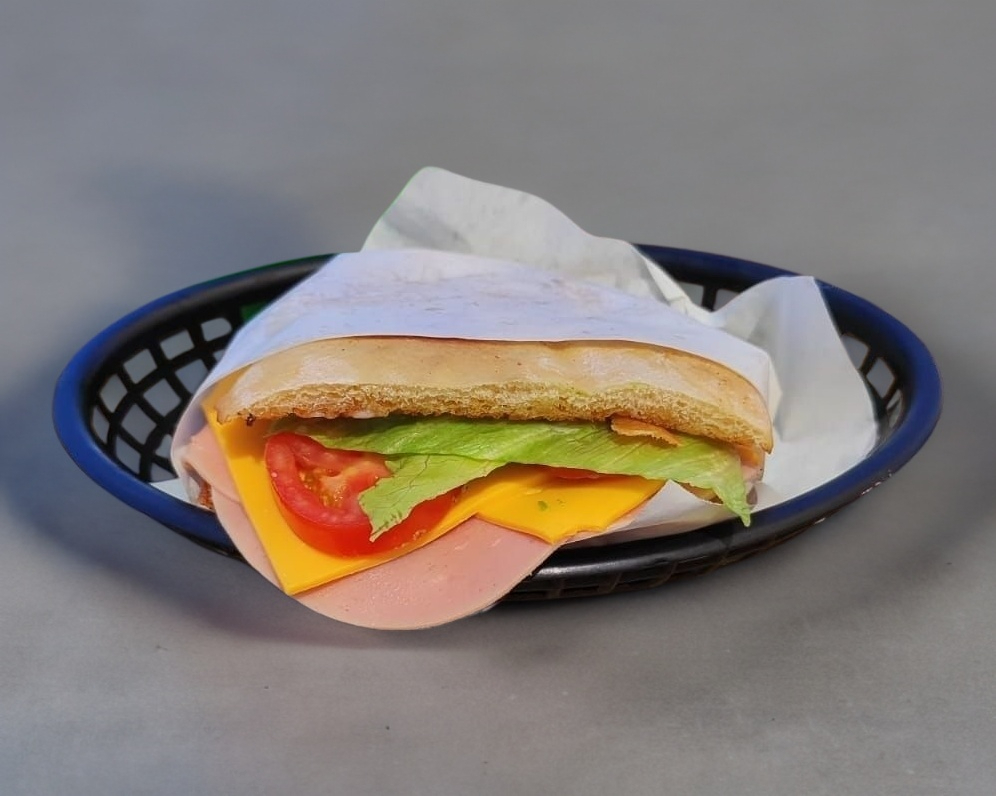 Pierna con queso amarillo, aguacate, mayonesa, tomate, lechuga