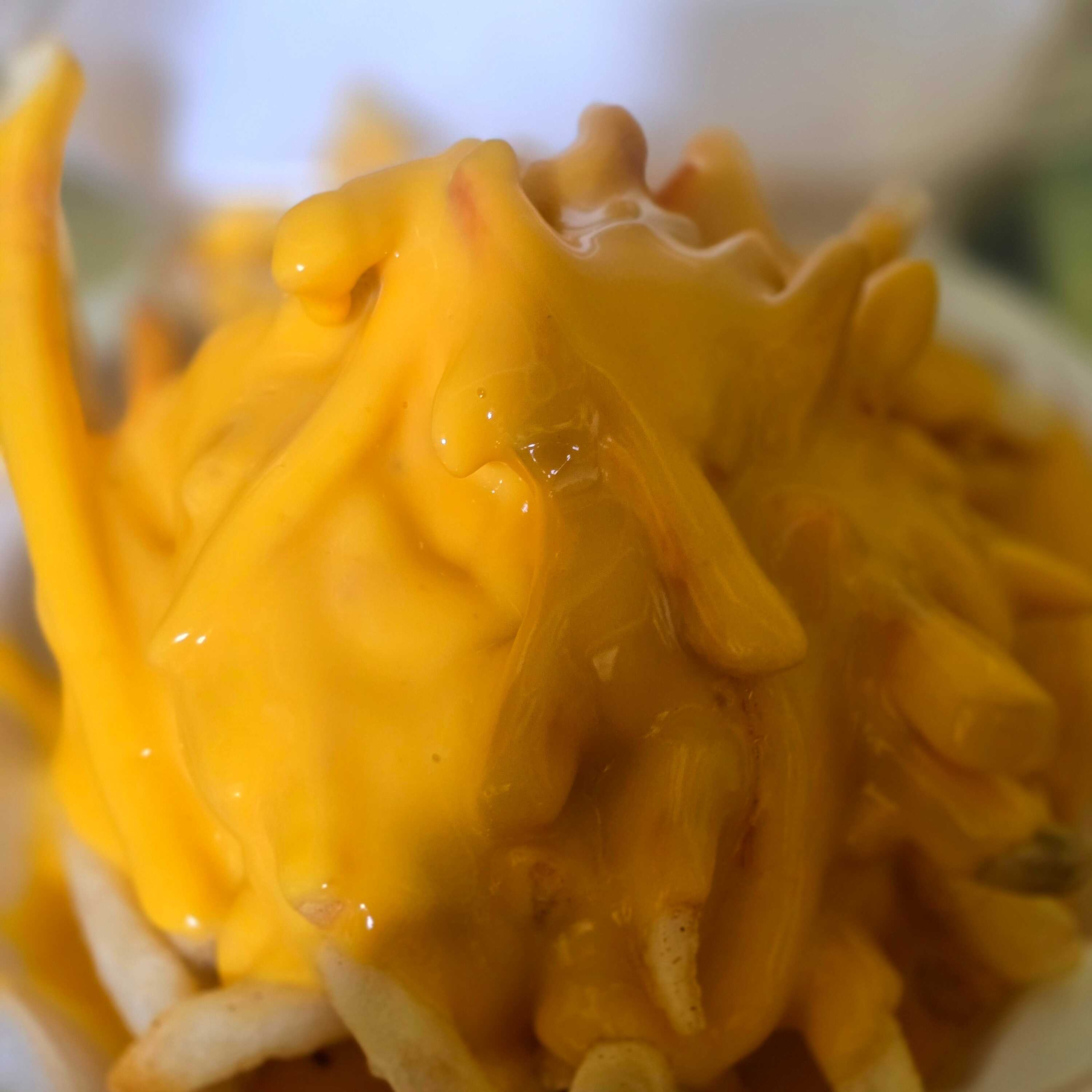 doble carne de res,queso amarillo,jamon,queso monterrey,lechuga,tomate,aros de cebolla ,mayonesa,mostaza,capsu y aderezo chipotle con papas fritas banadas en queso chedar