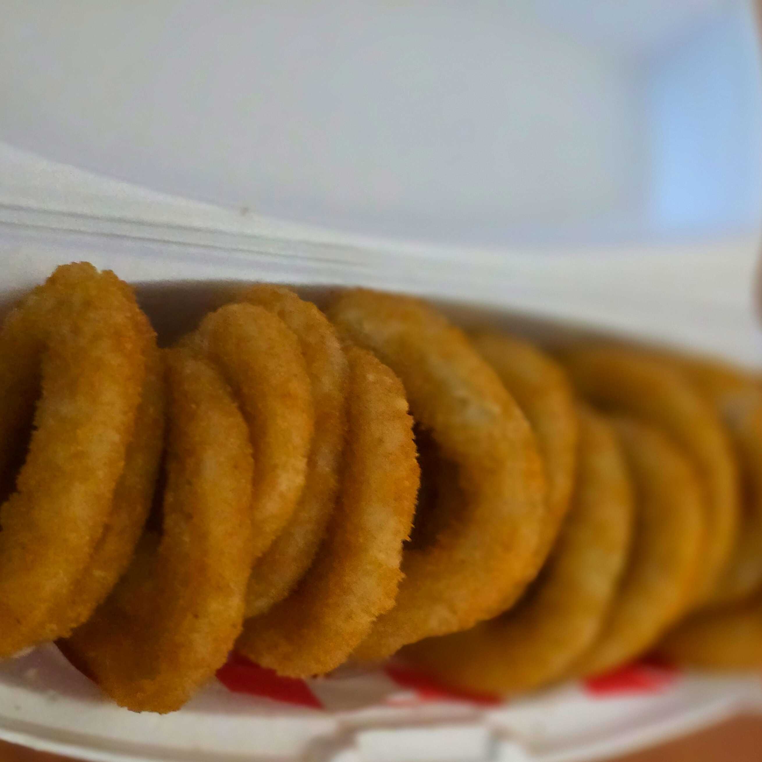 aros de cebolla , capsu , aderezo chipotle, capsu, mayonesa oh aderezo ranch