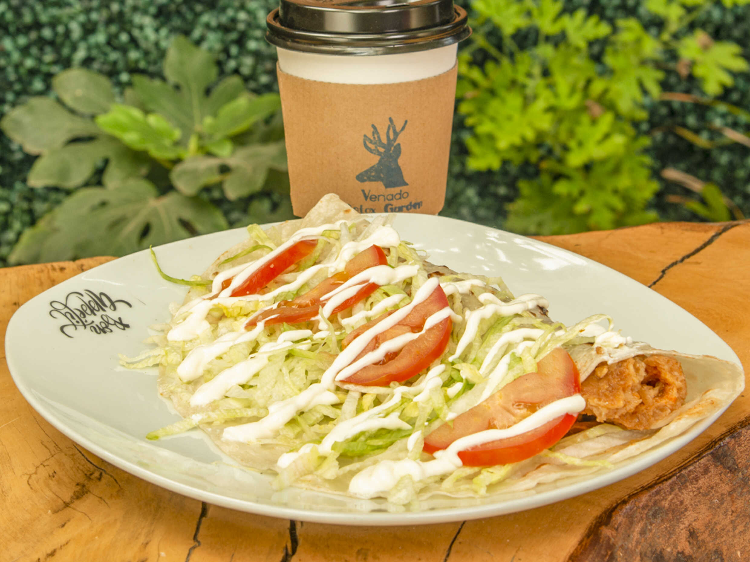 Con tortilla de harina, se sirve con queso, lechuga, tomate y crema.