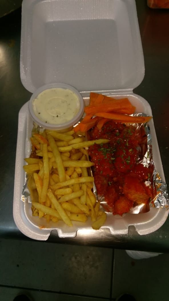 1 boneless 2 sabores a elegir - 2 ord papas c/ queso - tocino - queso y aderezo