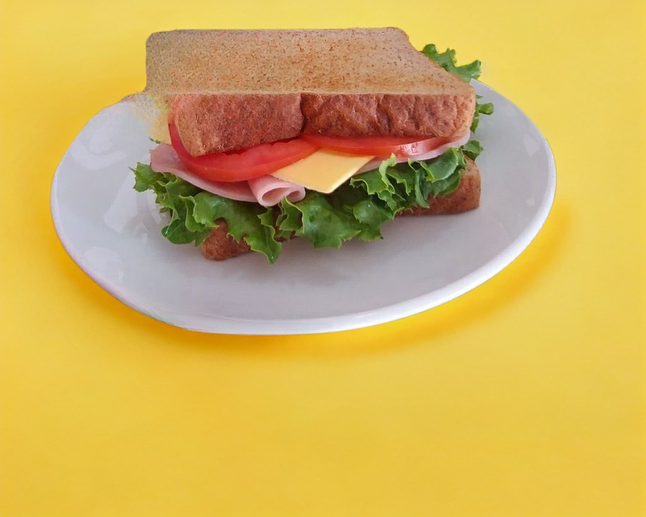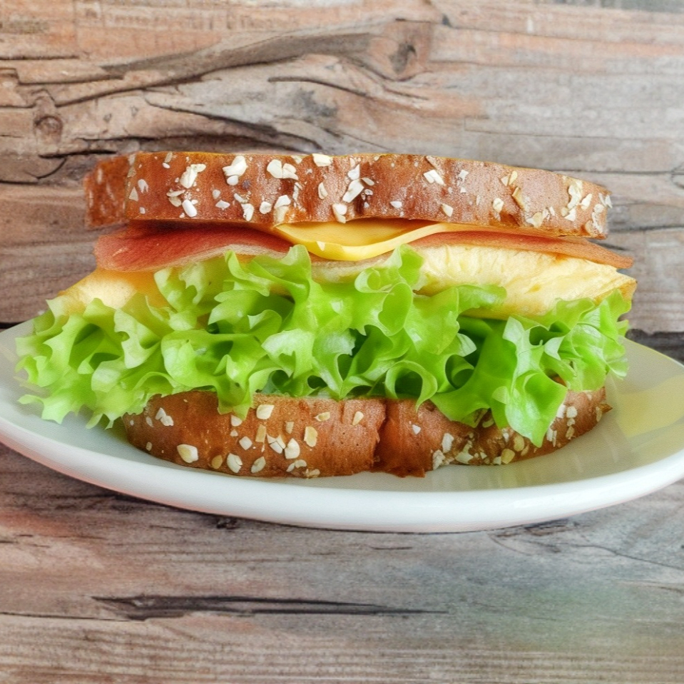 Pan integral, jamón de pavo, queso americano, tomate y lechuga.