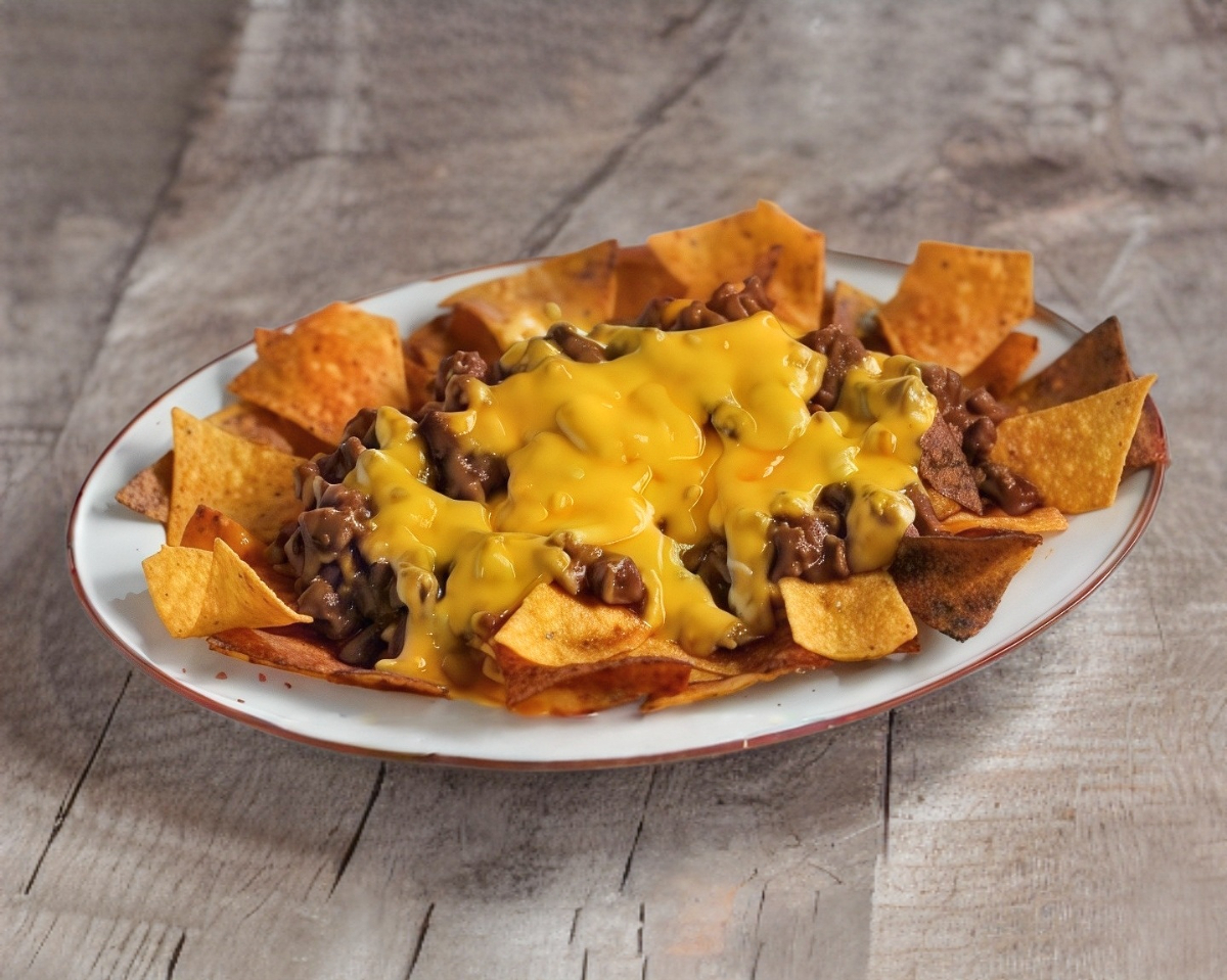 Carne de res, queso para nachos, tocino, verduras y aderezos.