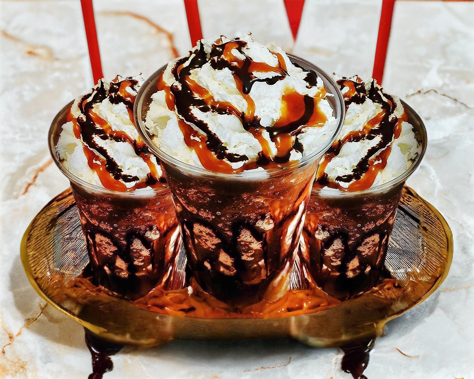 Café Espresso envinado de Kahlúa, caramel fudge, crema batida y hielo frappeado.