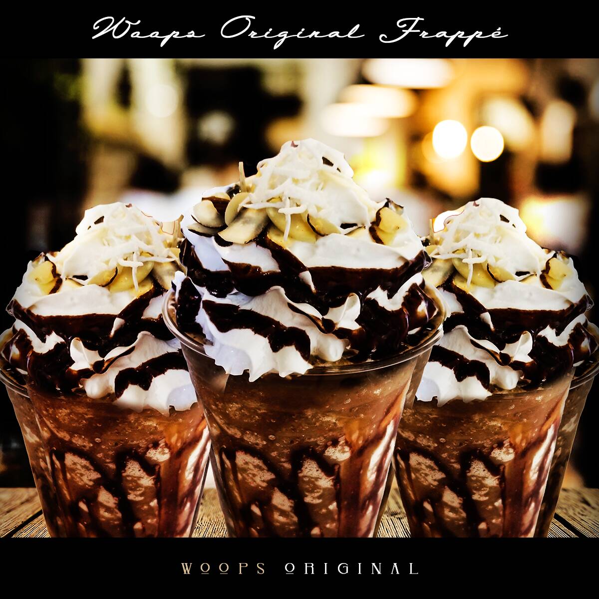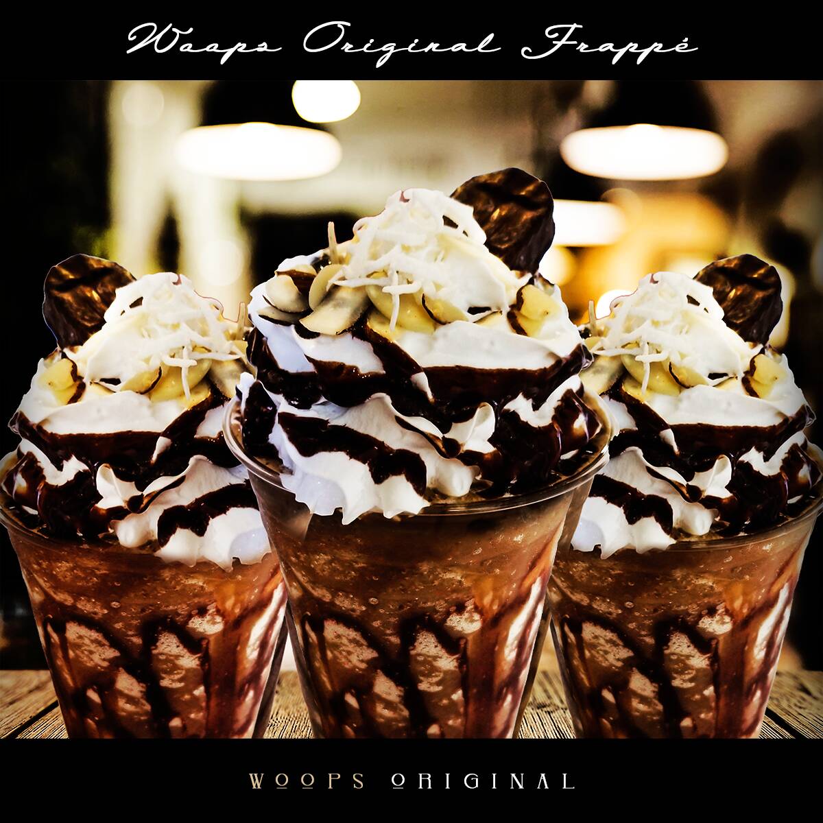 Café Espresso, leche, chocolate, hielo frappeado y un topping de almendras. En un Frappé Mocha se acentúa el sabor del chocolate.