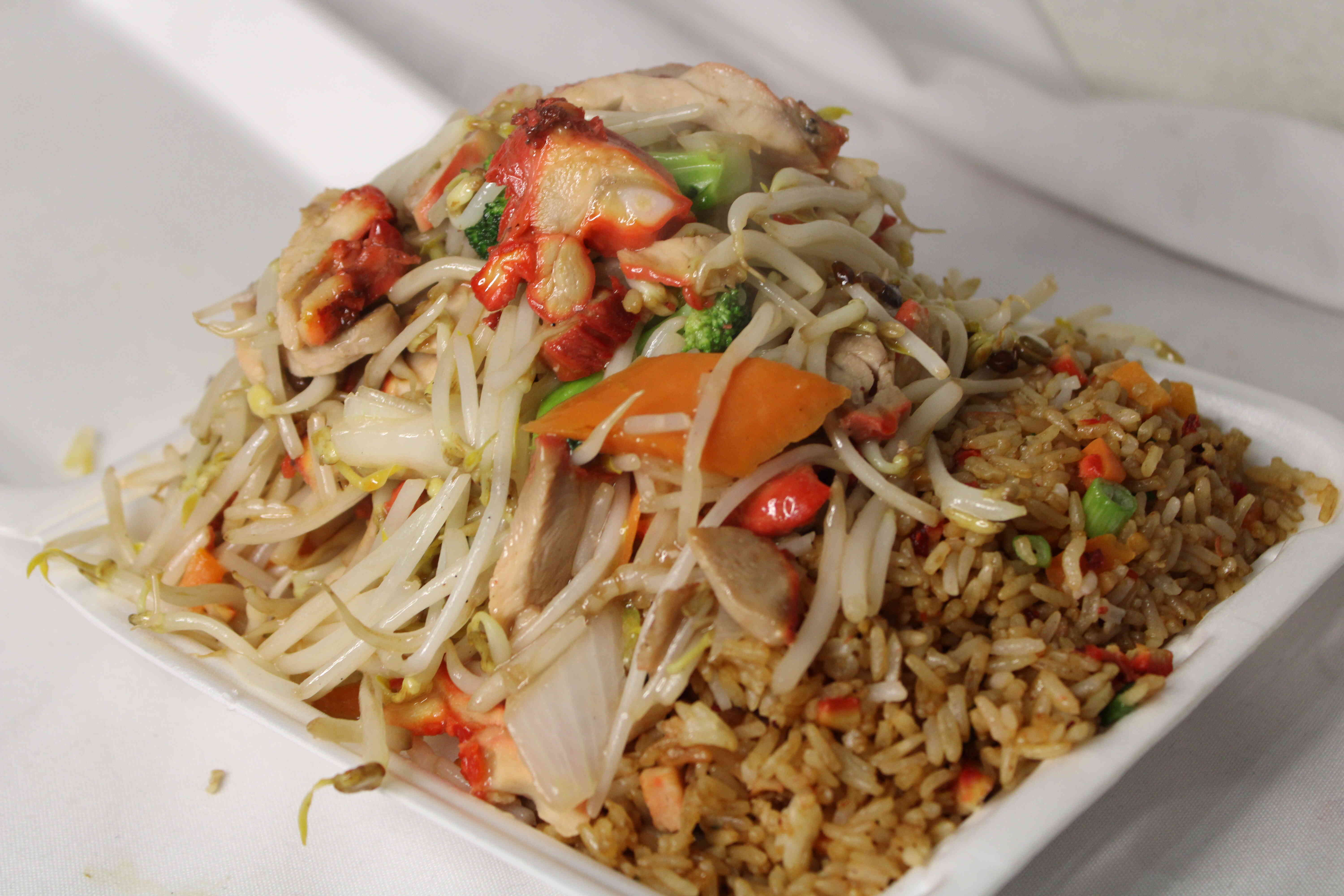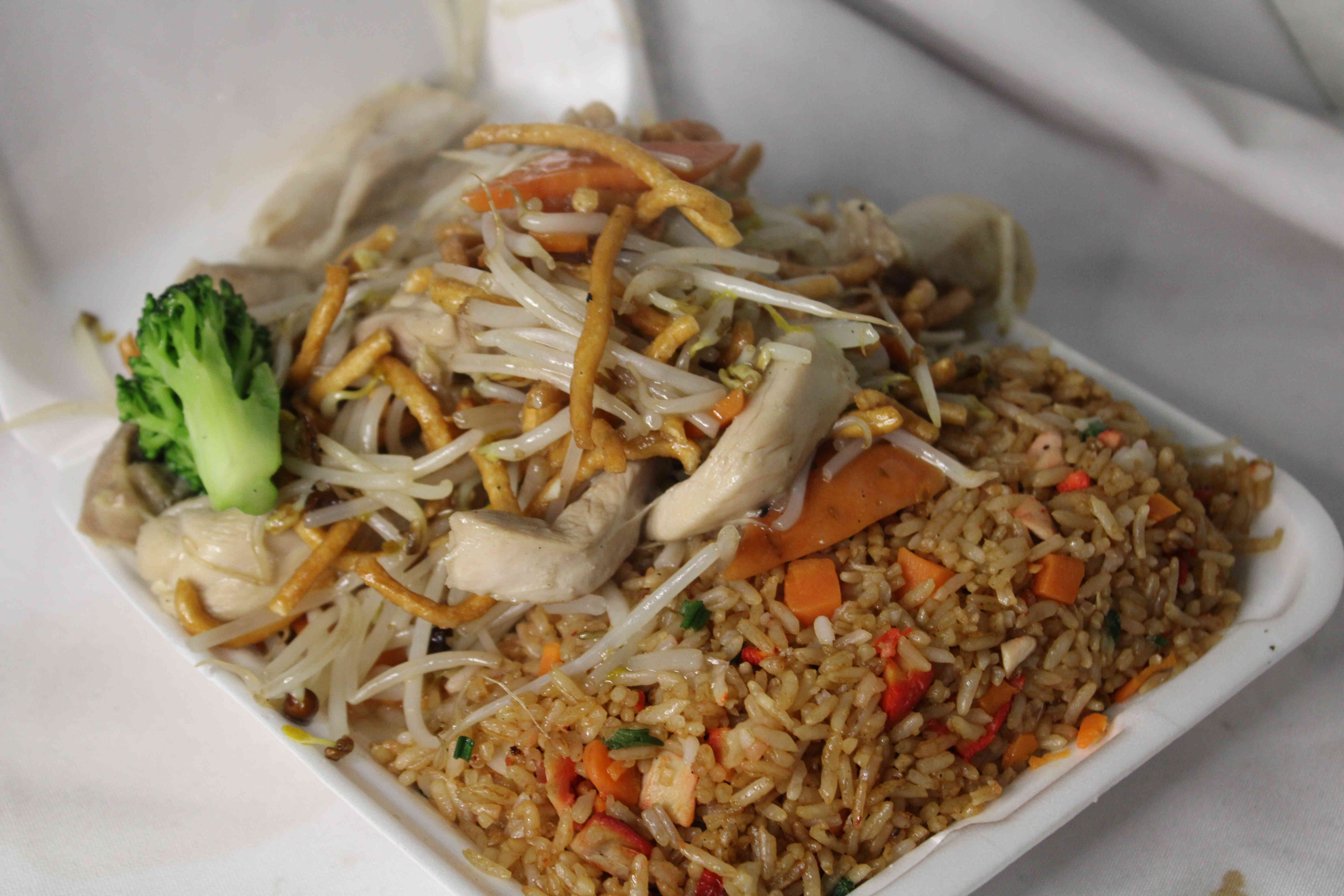 Chop Suey, carnita roja, zanahoria, brocoli, cebolla, elotito. Incluye 1 chun Kun. Arroz frito