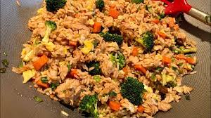 arroz frito con brocoli, elotito , zanahoria chop suey y cebollin