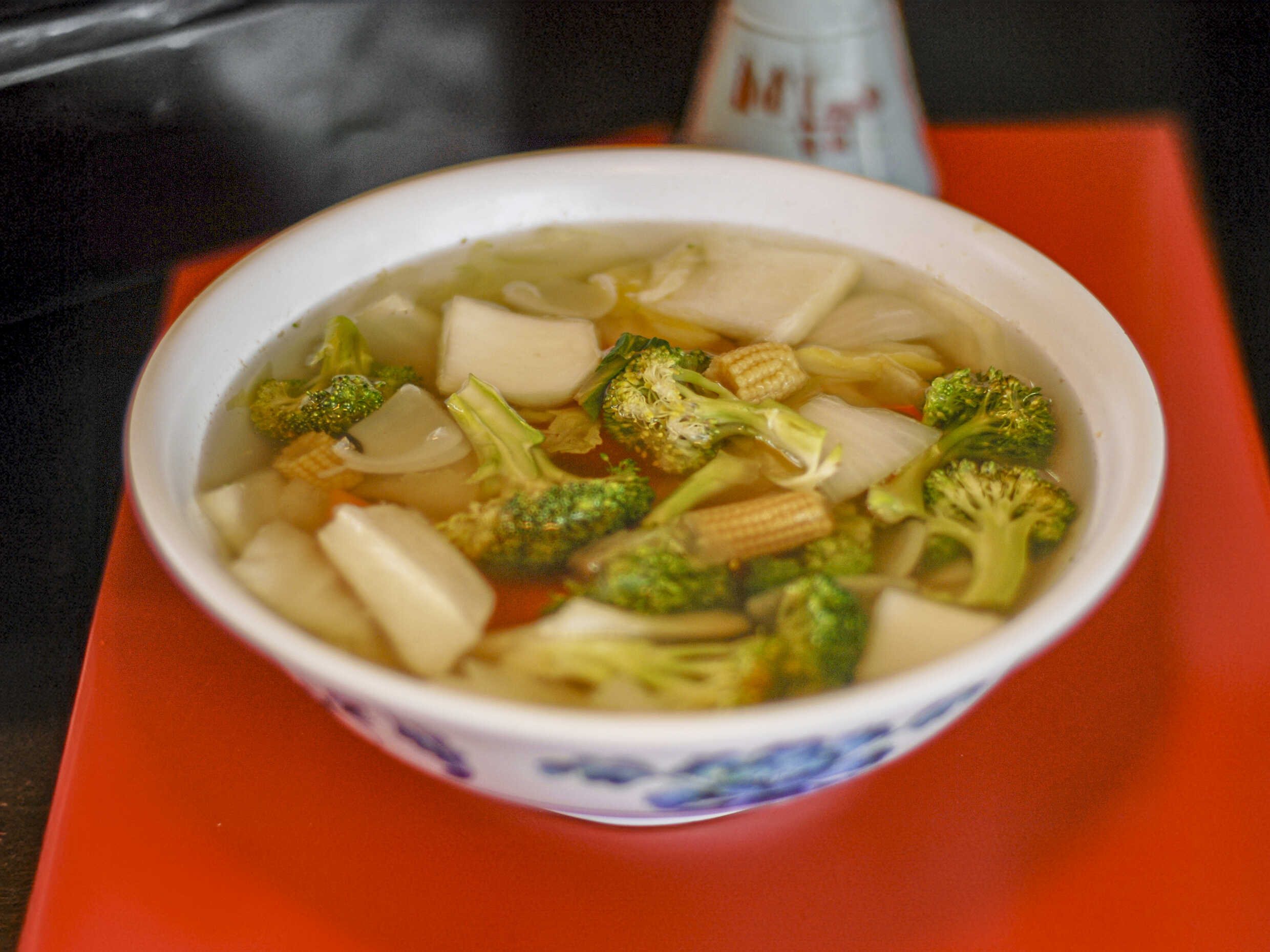 1 litro de caldo de verduras , napa , zanahoria , cebolla , elotitos , brocoli.