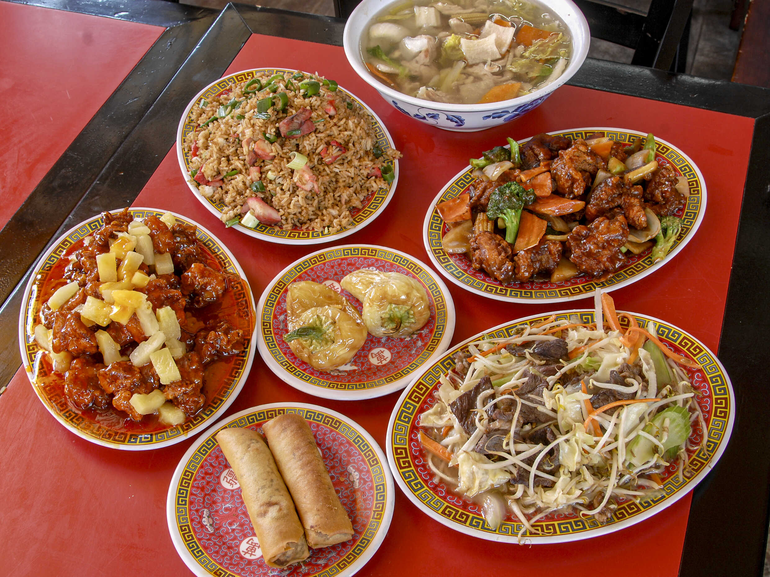 Caldo cantonés, arroz frito, pollo cantonés, res con brócoli, pollo mongolia, pollo con piña y chun kun.