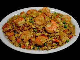Camarón con brócoli,zanahoria cebolla y elotitos, acompañado de arroz frito y chun kun.