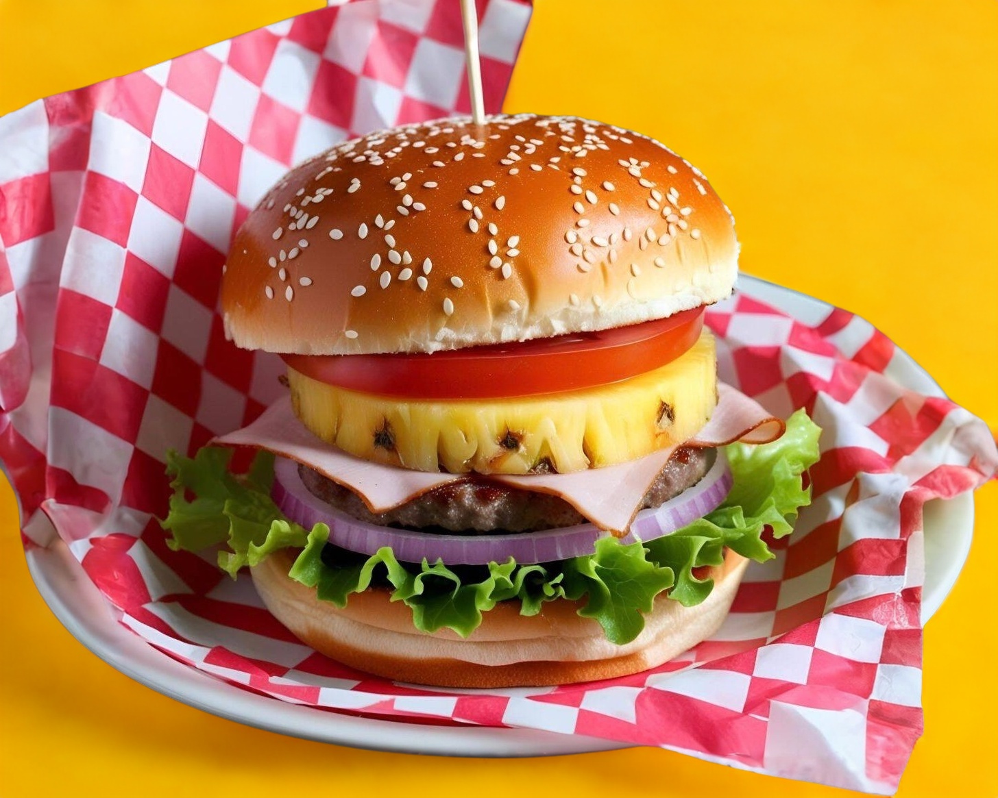 Tocino, piña, frijoles y jamón ( incluye papas y agua del día)