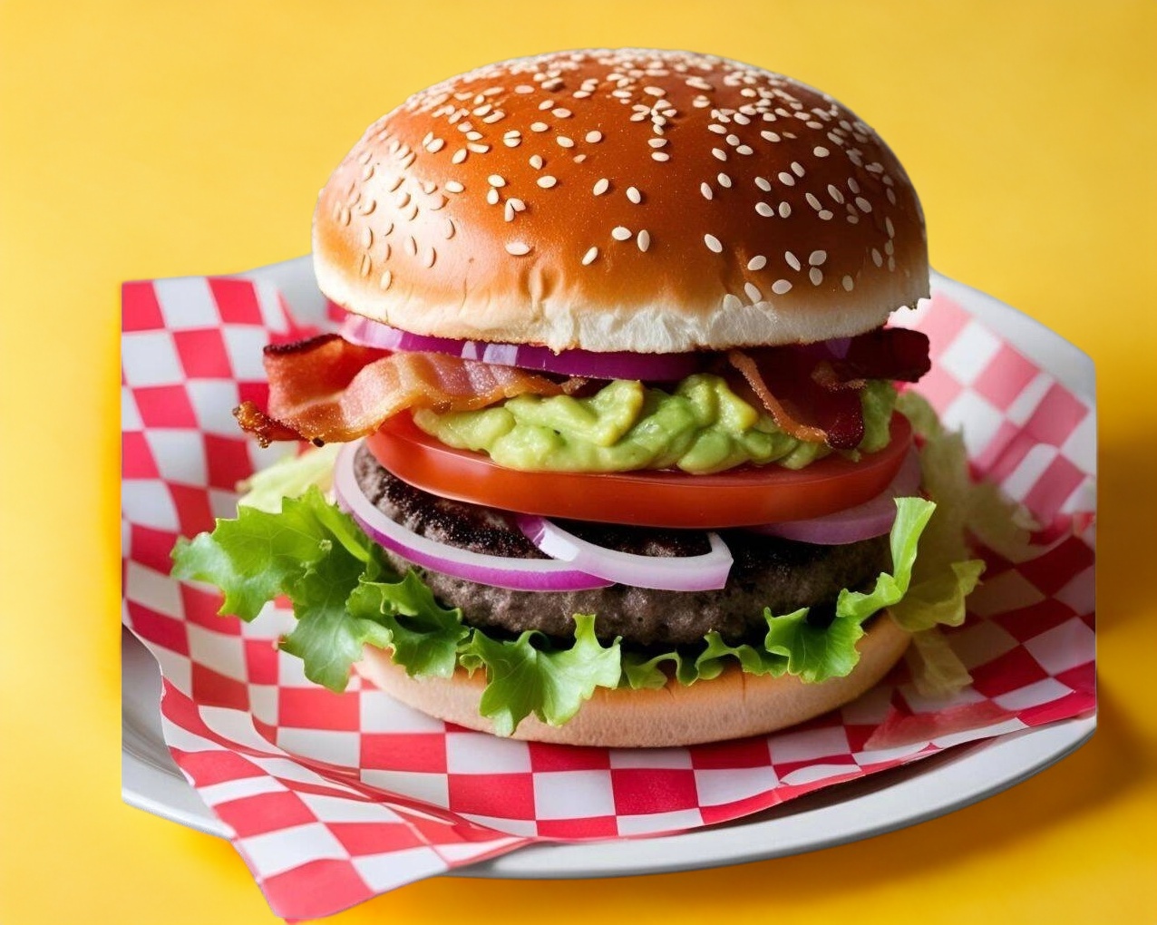 Guacamole y tocino ( incluye papas y agua del dia).