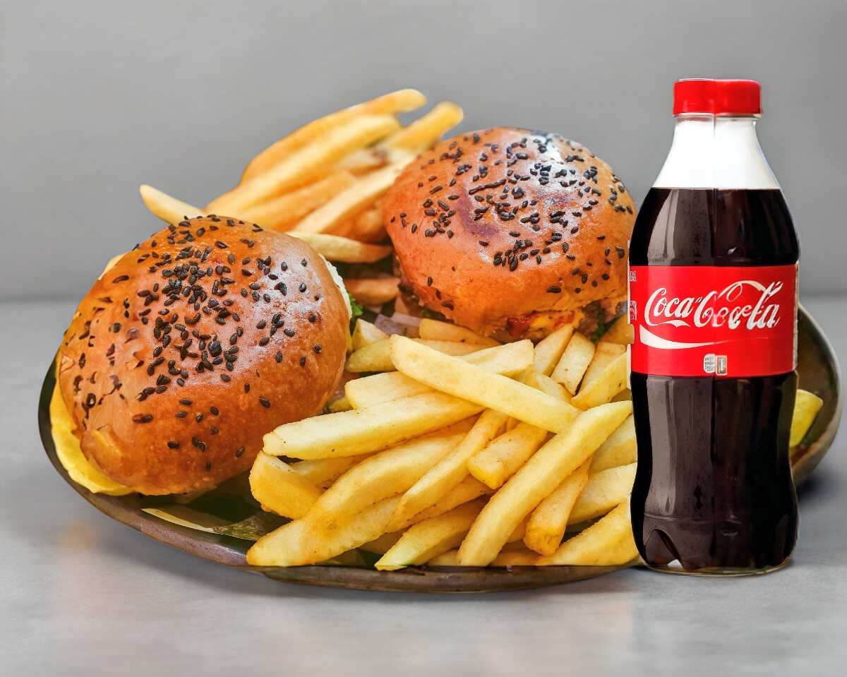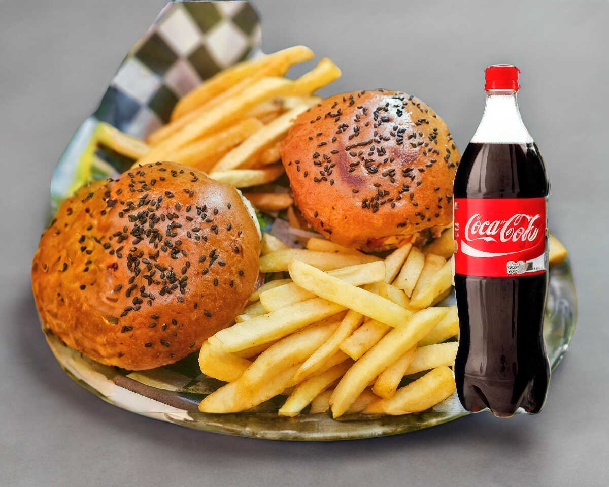 Papas a La Francesa Chicas*1 + Hamburguesa Artesanal*1 + Hamburguesa de Pollo*1 + Coca Cola 1.25ml*1