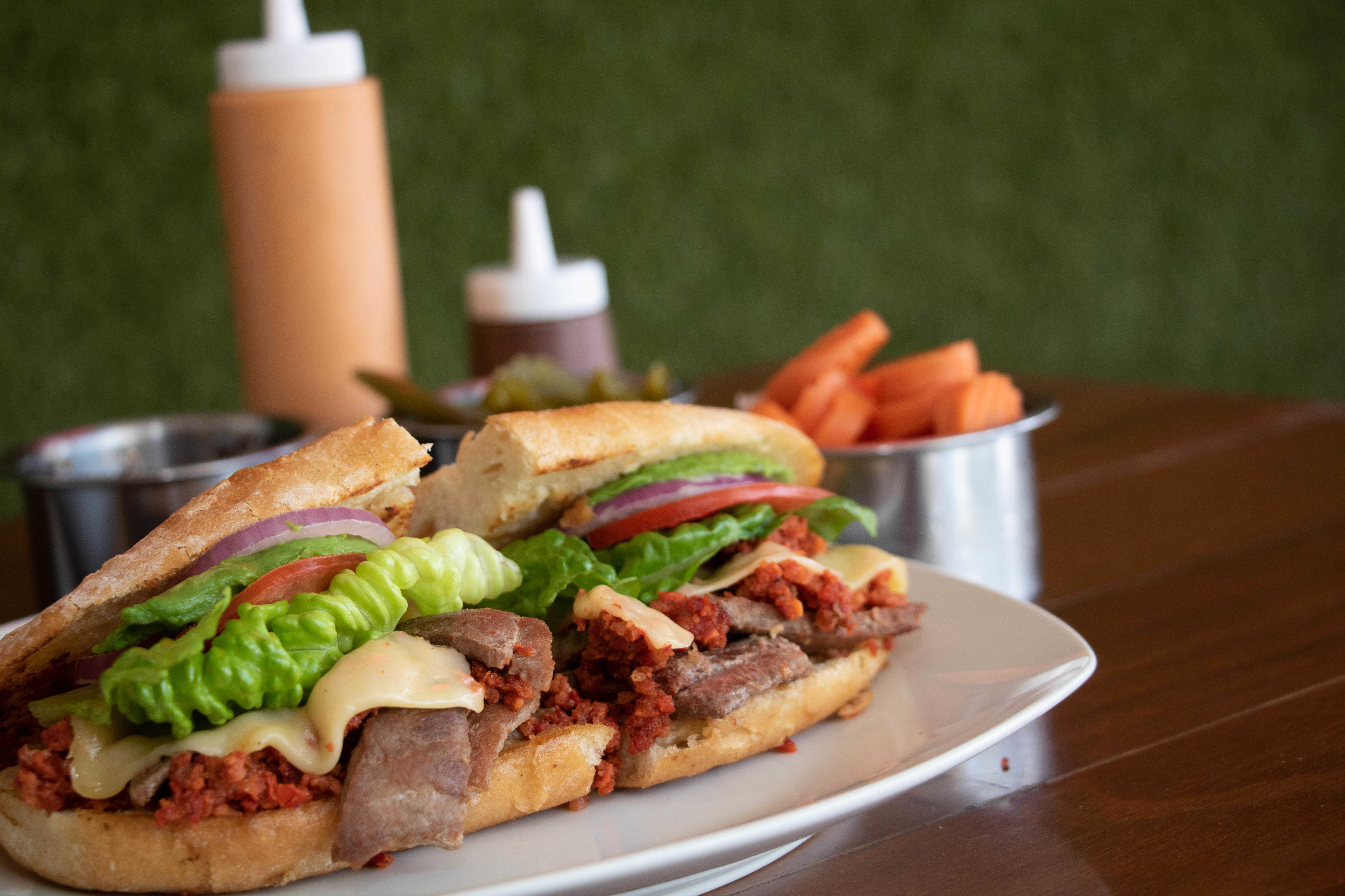 Diezmillo de res a la plancha, chorizo gratinado con queso manchego, lechuga, jitomate, cebolla y aguacate.