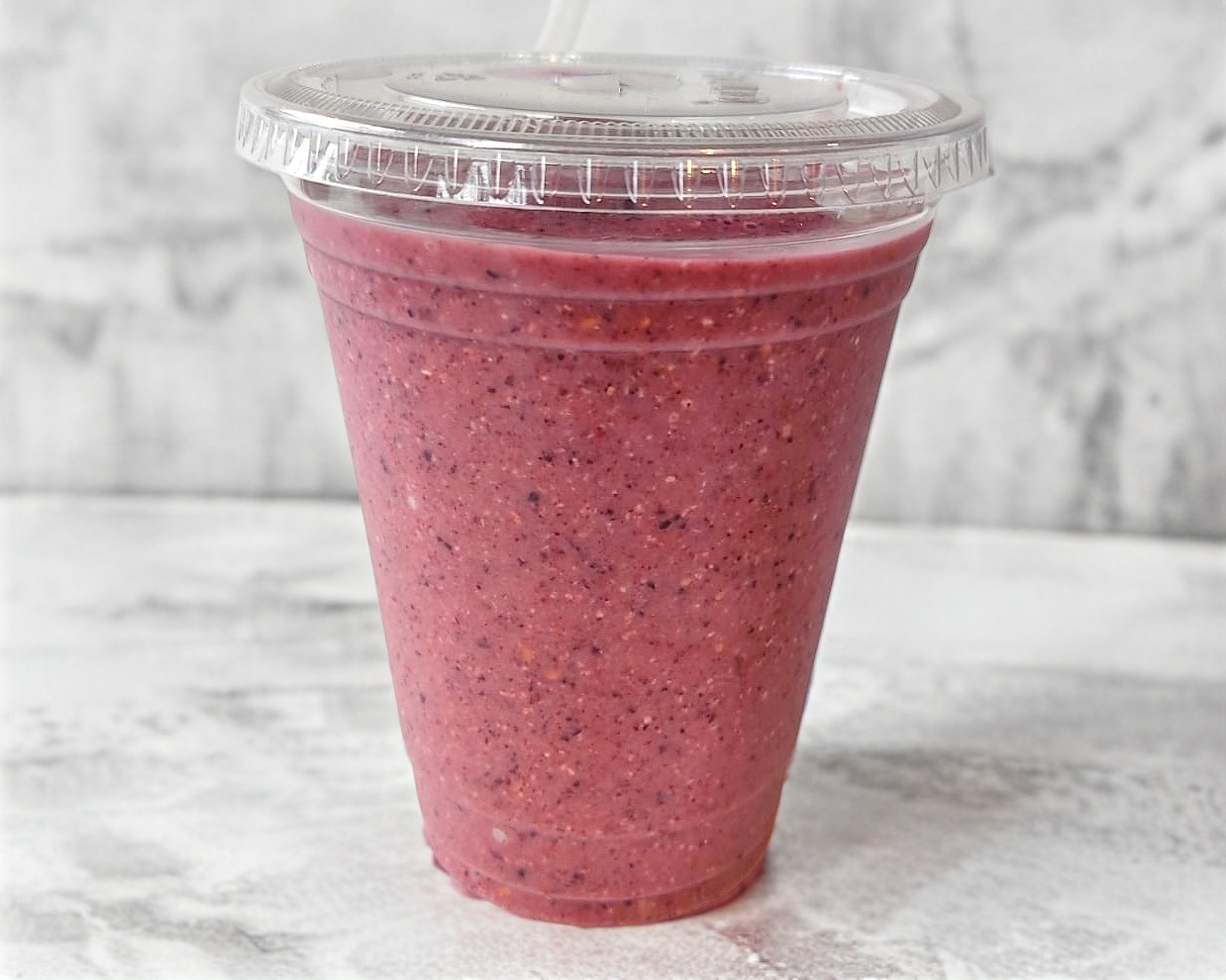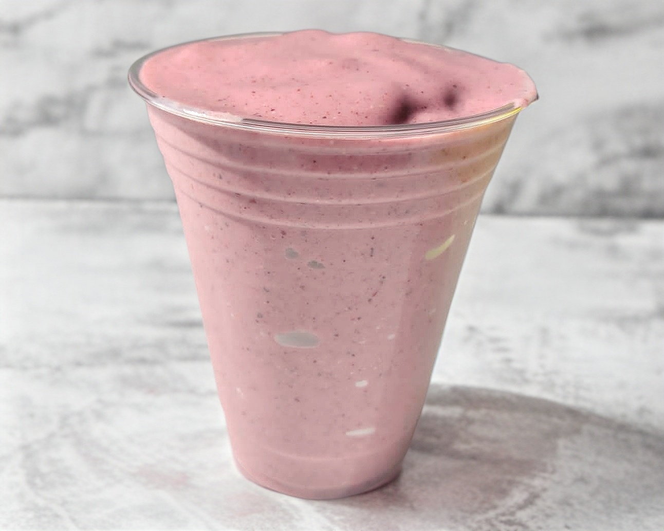 base de leche con platano, fresas, berries y avena