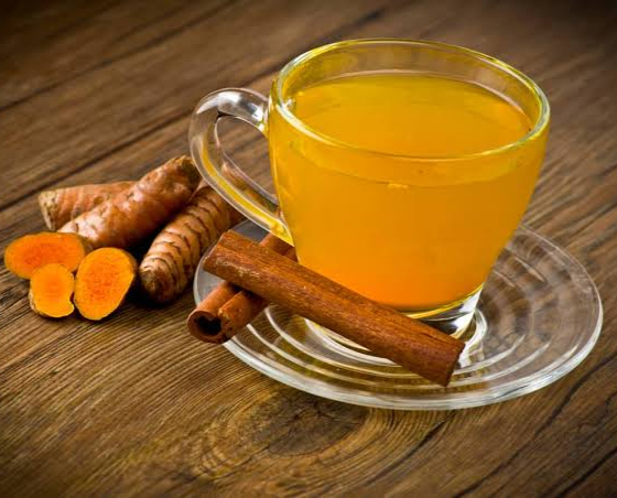 Mezcla de canela y curcuma en agua caliente.
