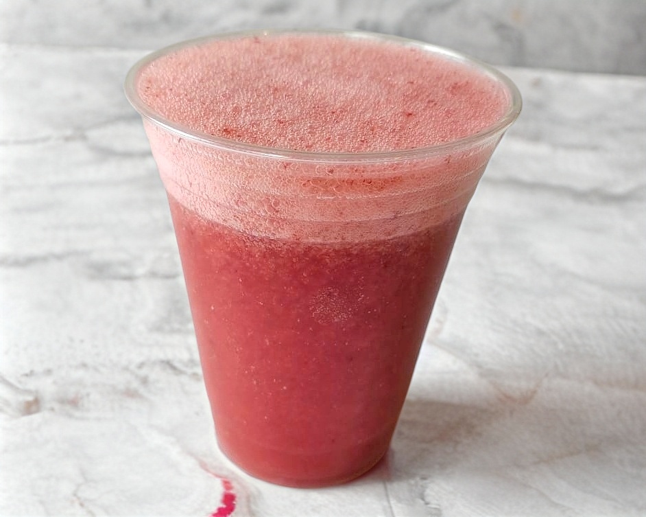 Base de agua con fresas, espinacas y cúrcuma