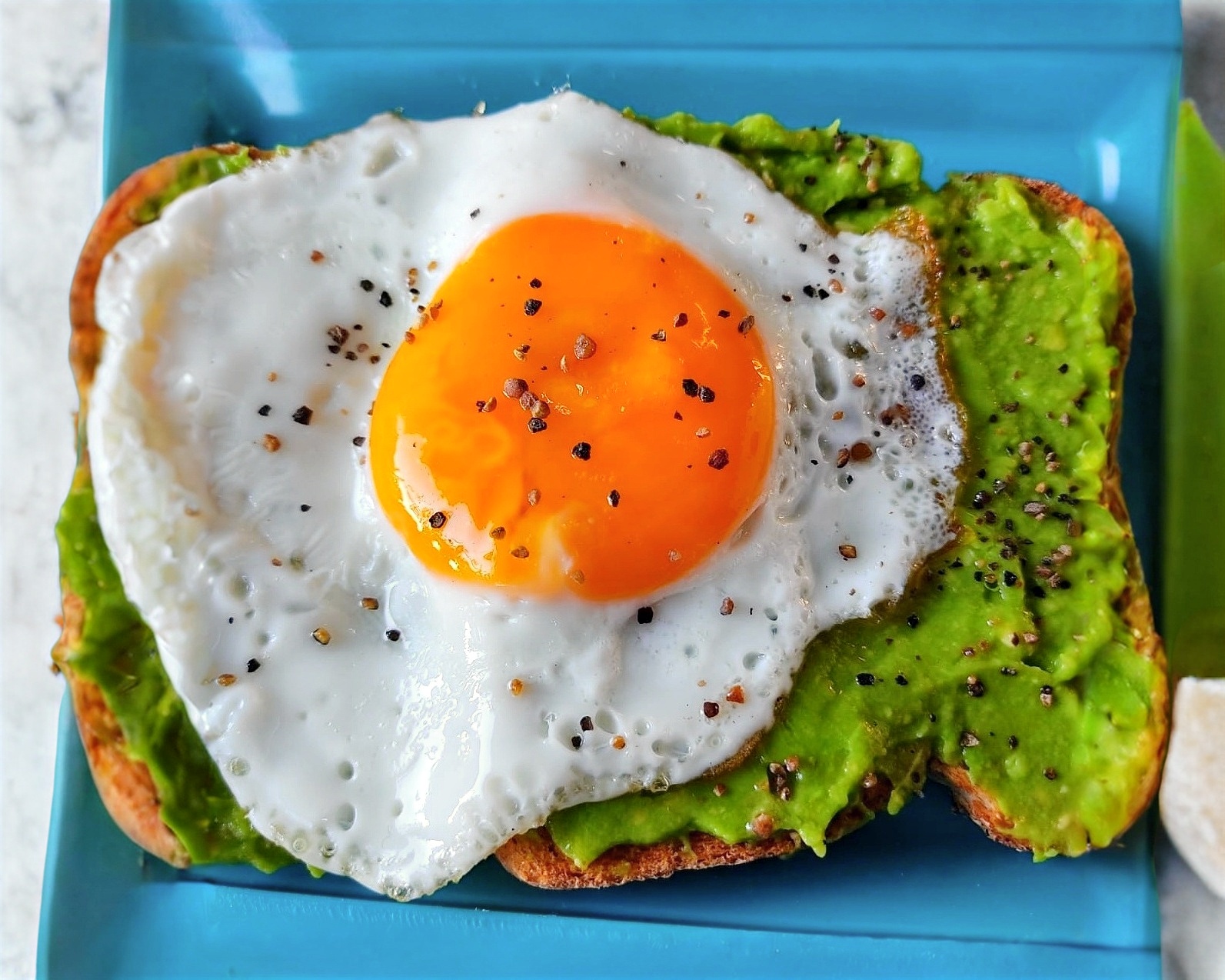 Pan doble cero tostado, guacamole y huevo estrellado