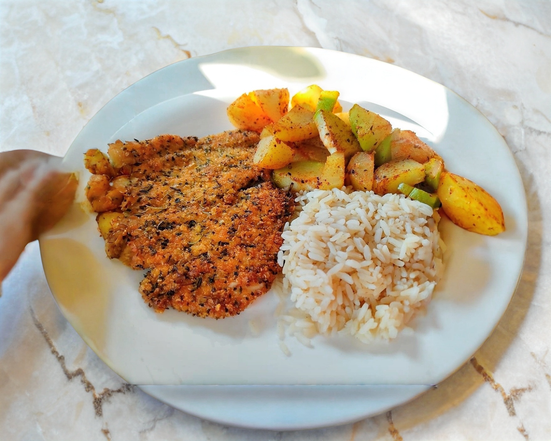 acompañado de verduras al vapor y porción de arroz