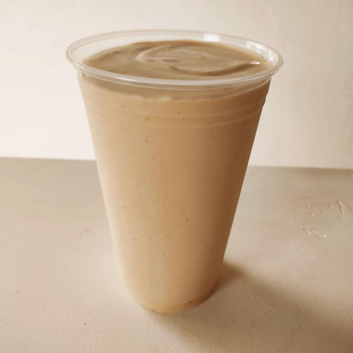 Crema de cacahuate natural, plátano y hielo.