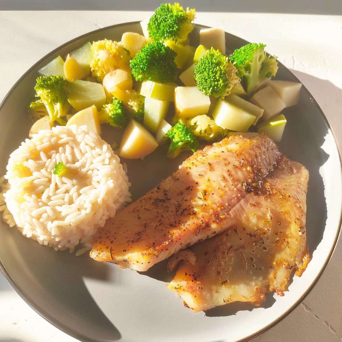 Acompañado de verduras al vapor y arroz