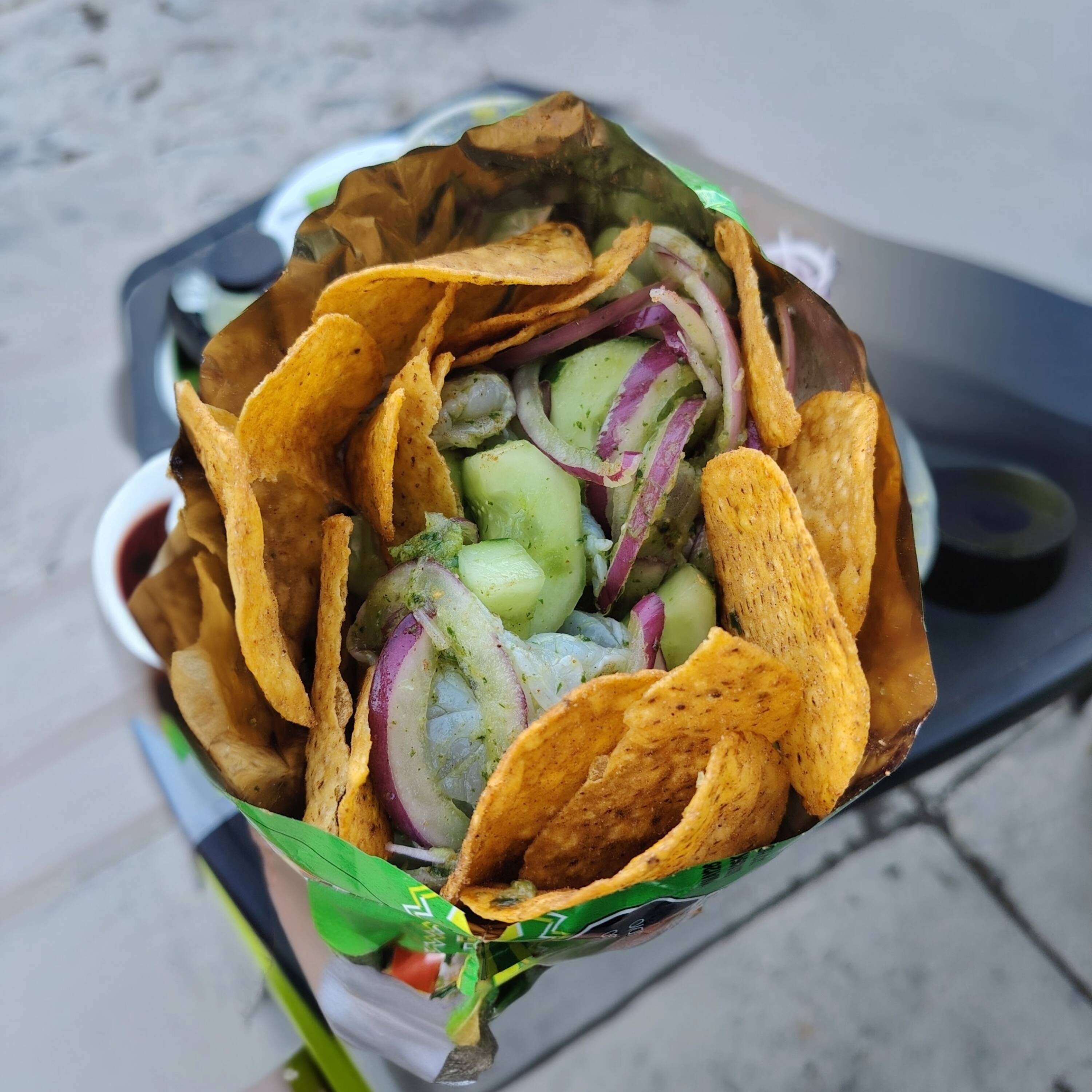 Refresco lata (Coca-Cola, Sprite, Manzanita)*1 + Varitas de camarón (3 piezas)*1 + Aguachile verde ½ lt*1 + Salsa Picante Verde*2 + Ceviche de pescado ½ lt*1