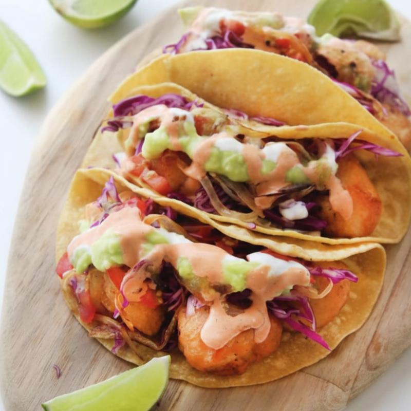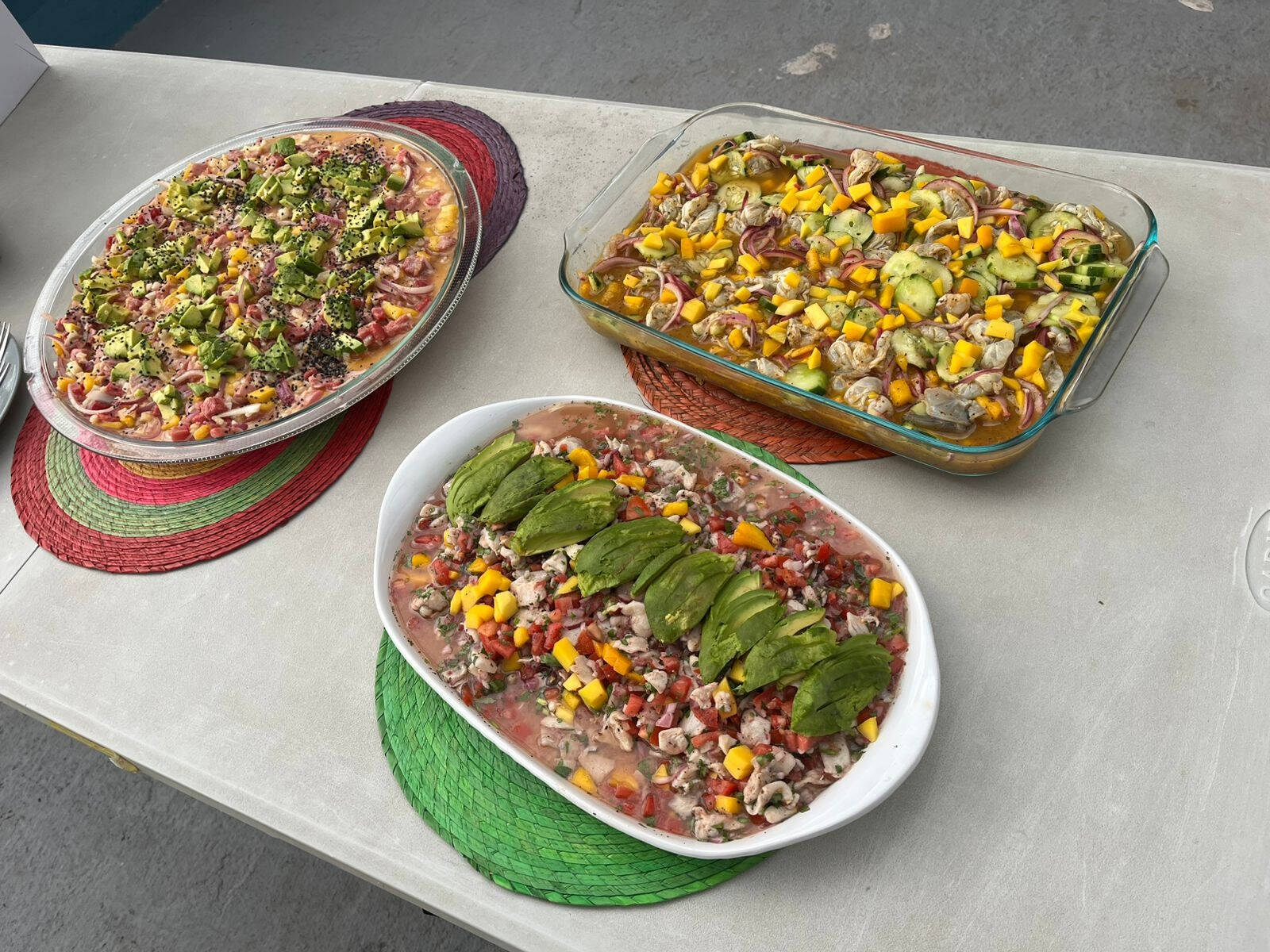 Atún fresco bañada en salsa agridulce, jícama, cubitos de mango, cebolla morada, chile serrano y aguacate.