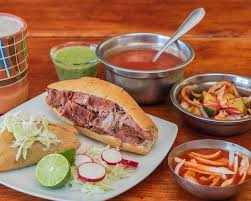 Una torta con proteína de tu elección y dos tacos dorados, con relleno a elegir.
