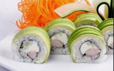 Philadelphia, pepino, zanahoria, camarón y por fuera aguacate.