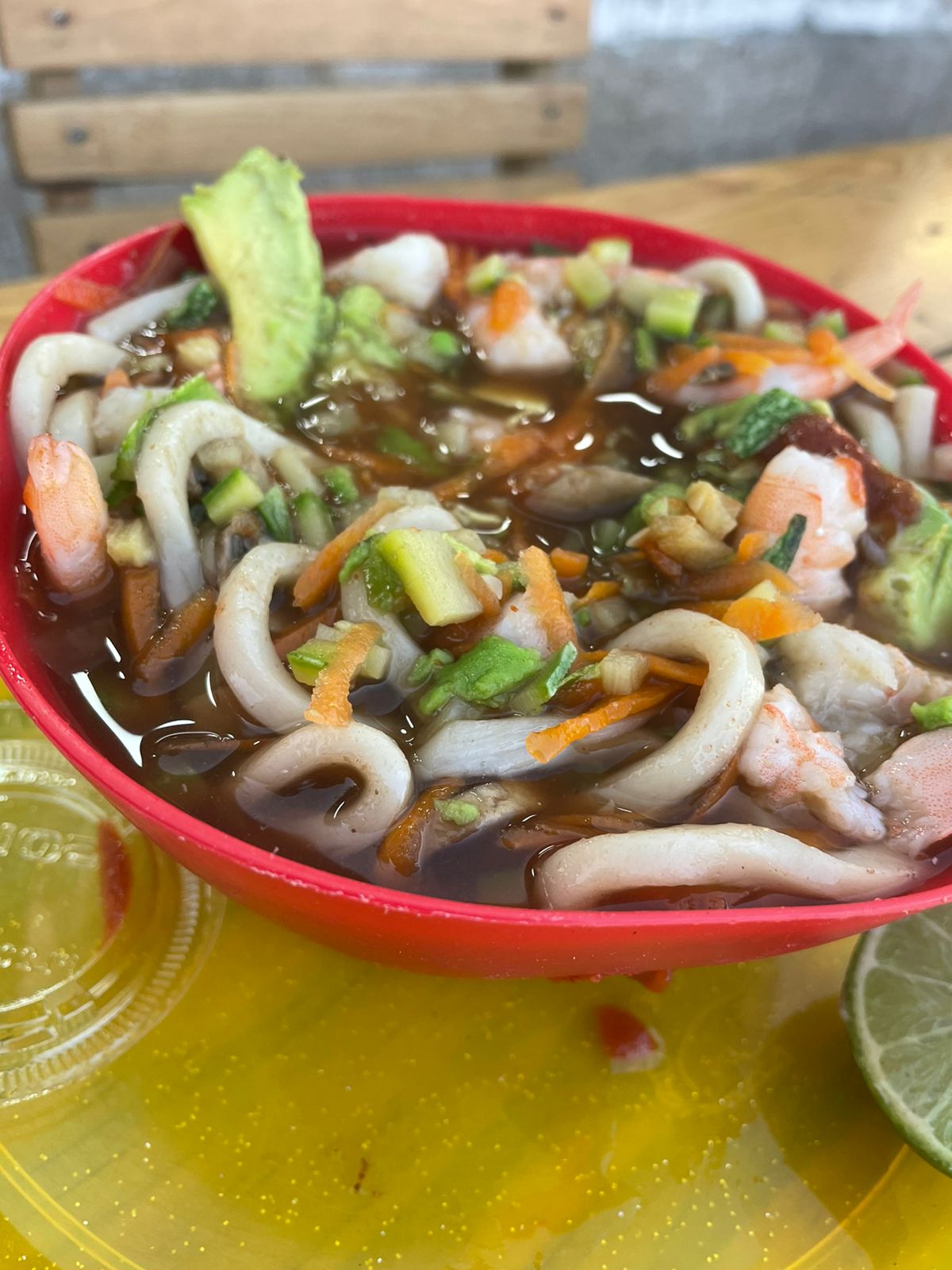 Philadelphia, pepino, zanahoria, camarón y por fuera aguacate,ensalada de mariscos,camaron empanizado y salsa de anguila