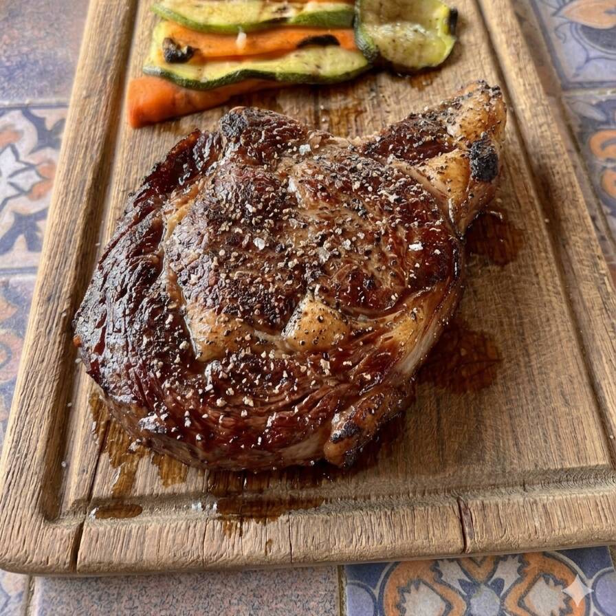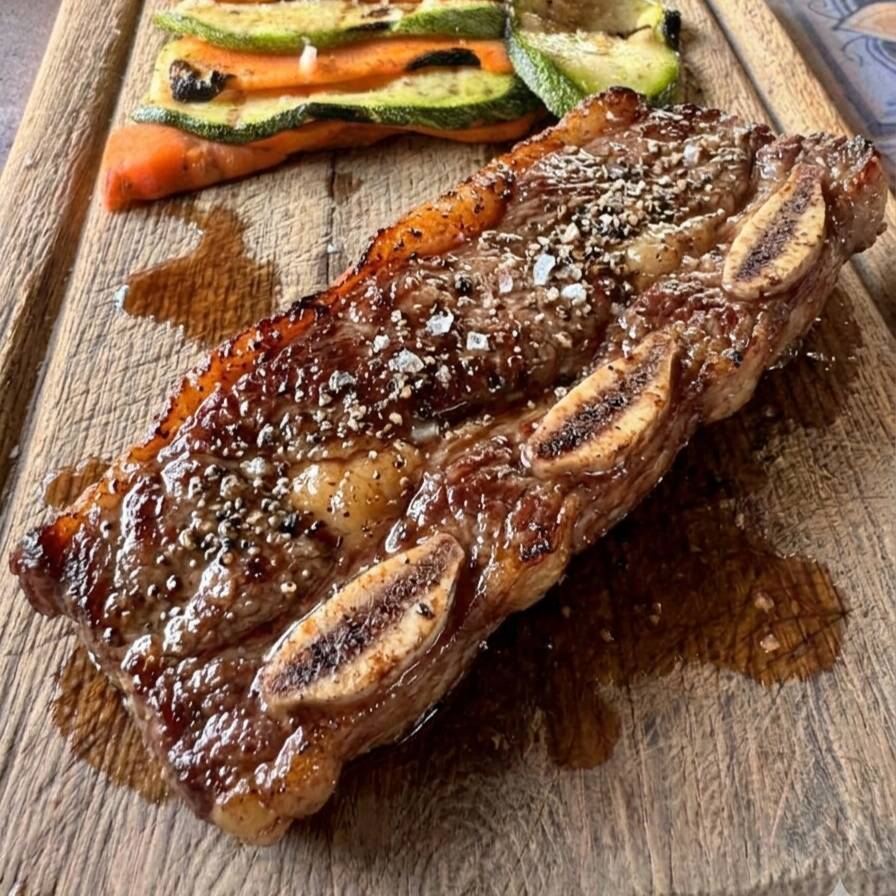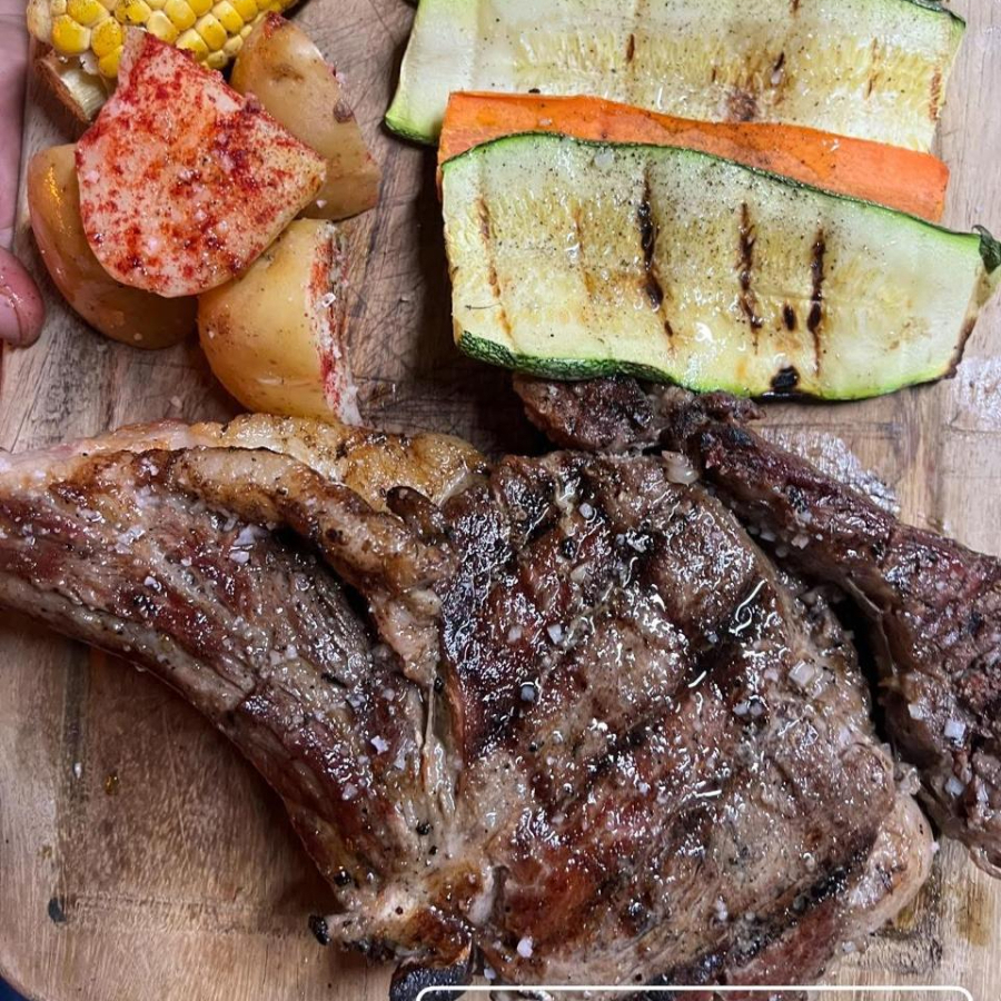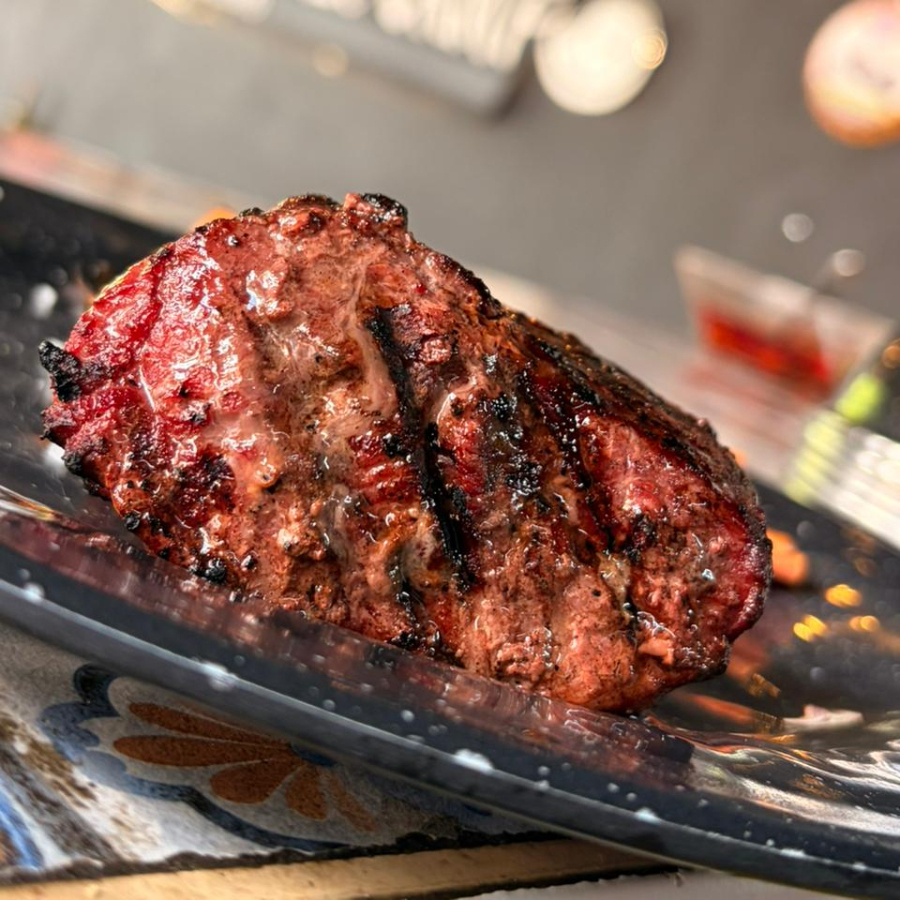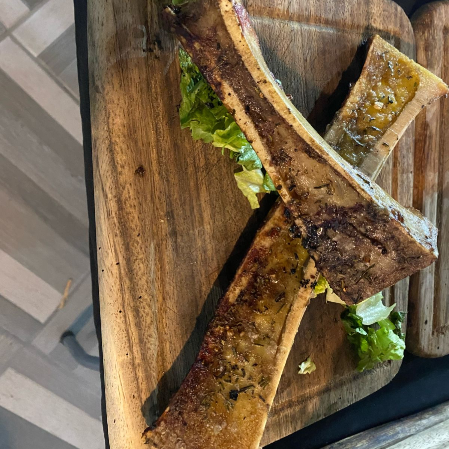 Dos huesos a la parrilla sazonados con rub de la casa.