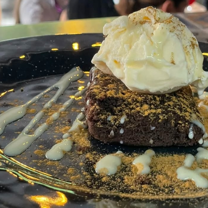 Brownie de chocolate con bola de helado