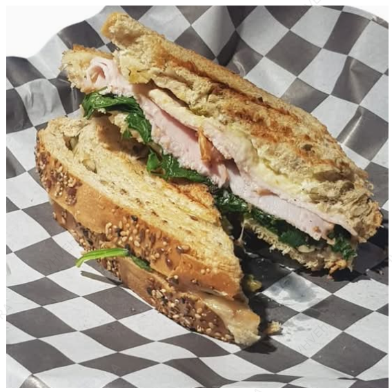Jamón ahumado, queso, espinacas y crema de la casa en pan multigrano de masa madre.