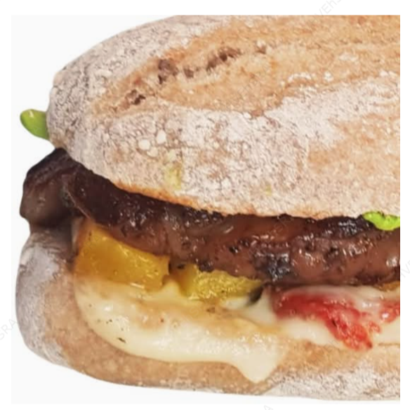 Picaña ahumada en base de queso fundido con chistorra, con morrones salteados y aguacate. Todo en pan campesino untado de nuestra crema especial.