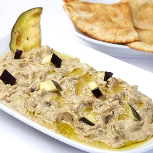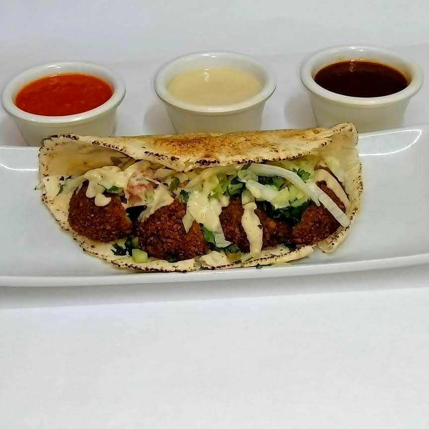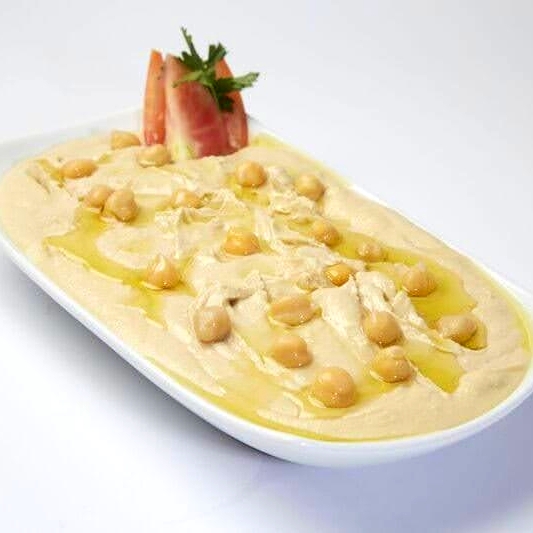 Hummos, jitomate, perejil, lechuga, cebolla, salsa de ajonjoli