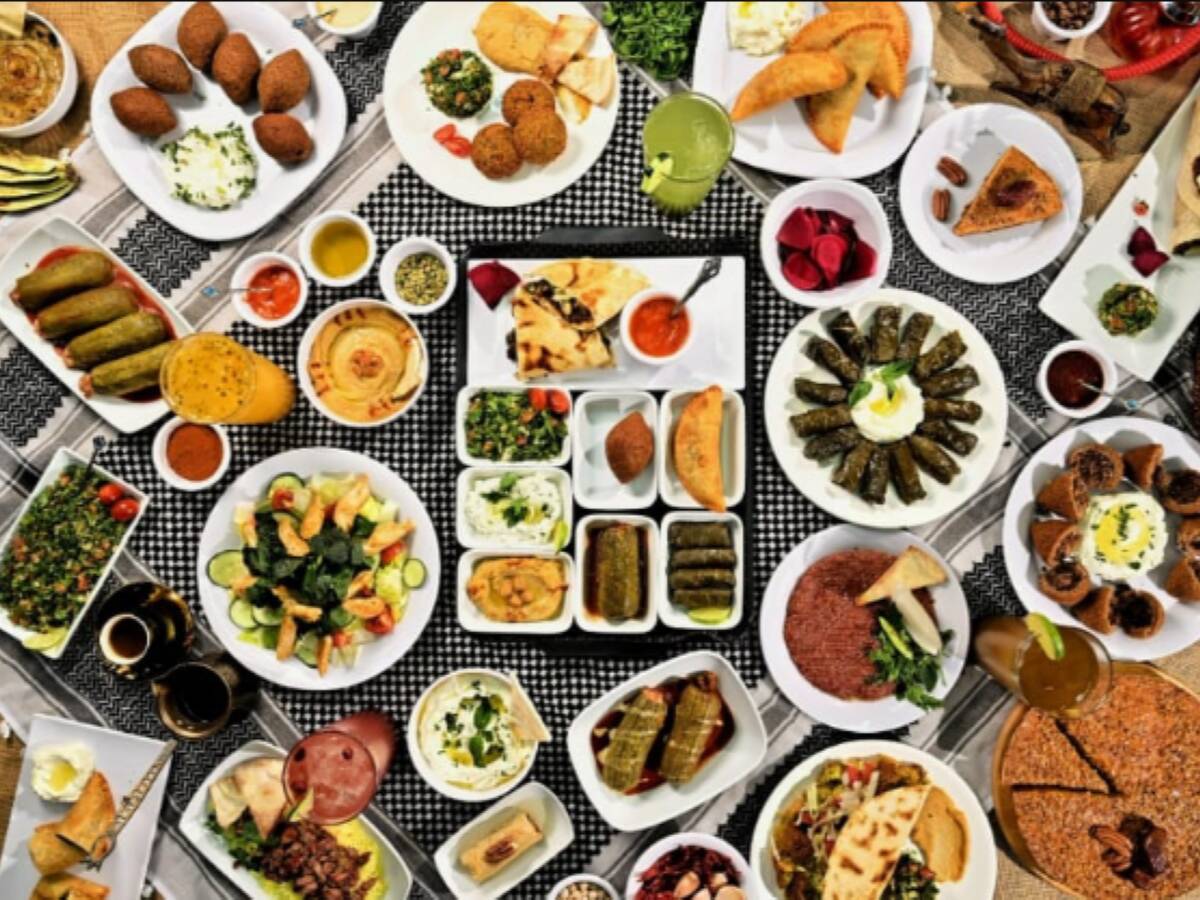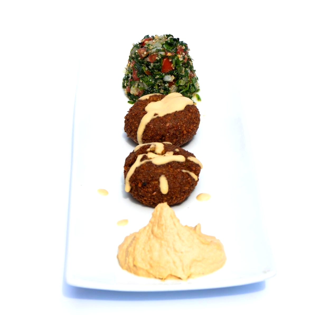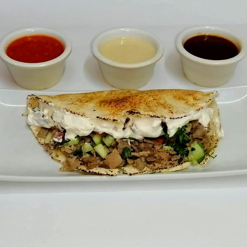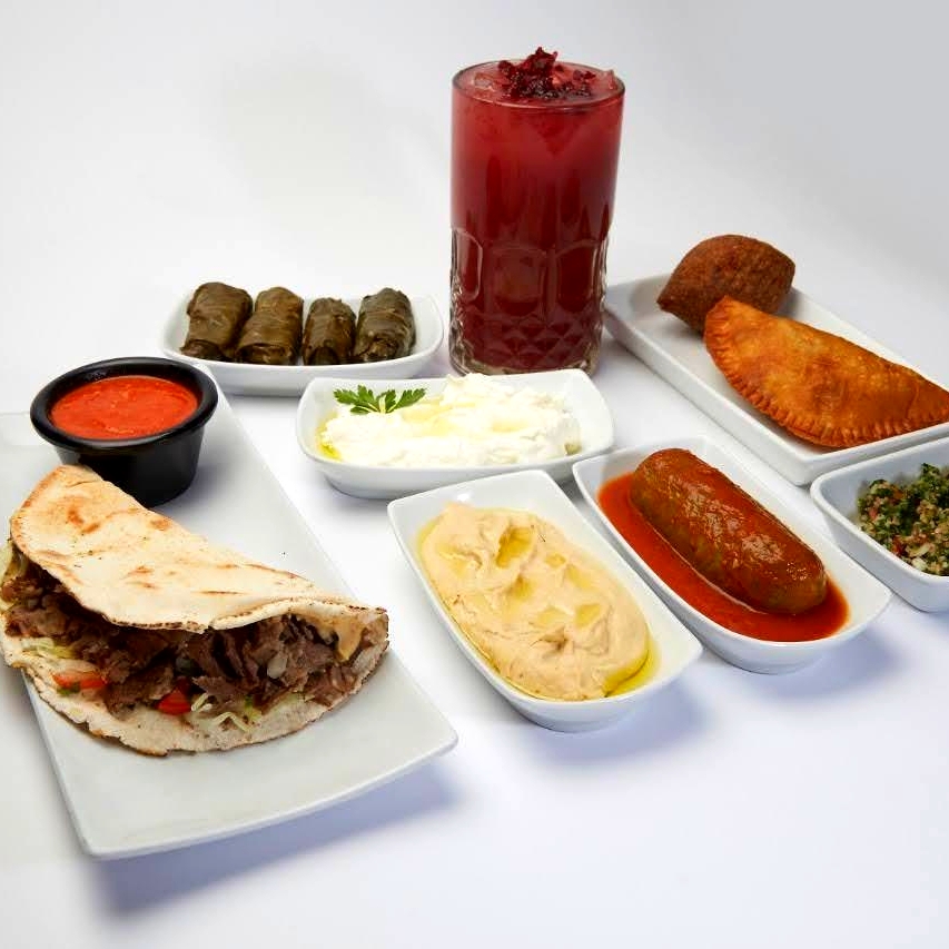 1 shawarma de Res, 4 hojas de Parra, 1 Calabaza Rellena, 1 Kepe Bola, 1 Empanada, 4 oz de Hummus, 4 oz de Jocoque, 4 oz de Tabule y 1 Agua Fresca