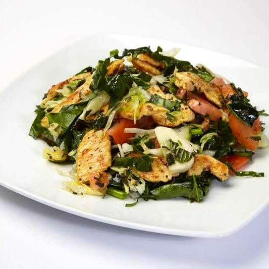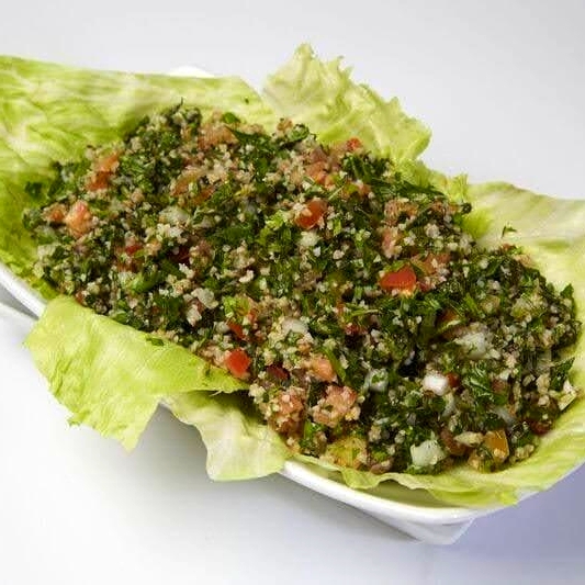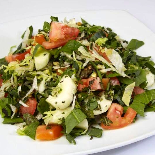 Lechuga, jitomate,pepino, espinaca, hierbabuena y vinagreta arabe