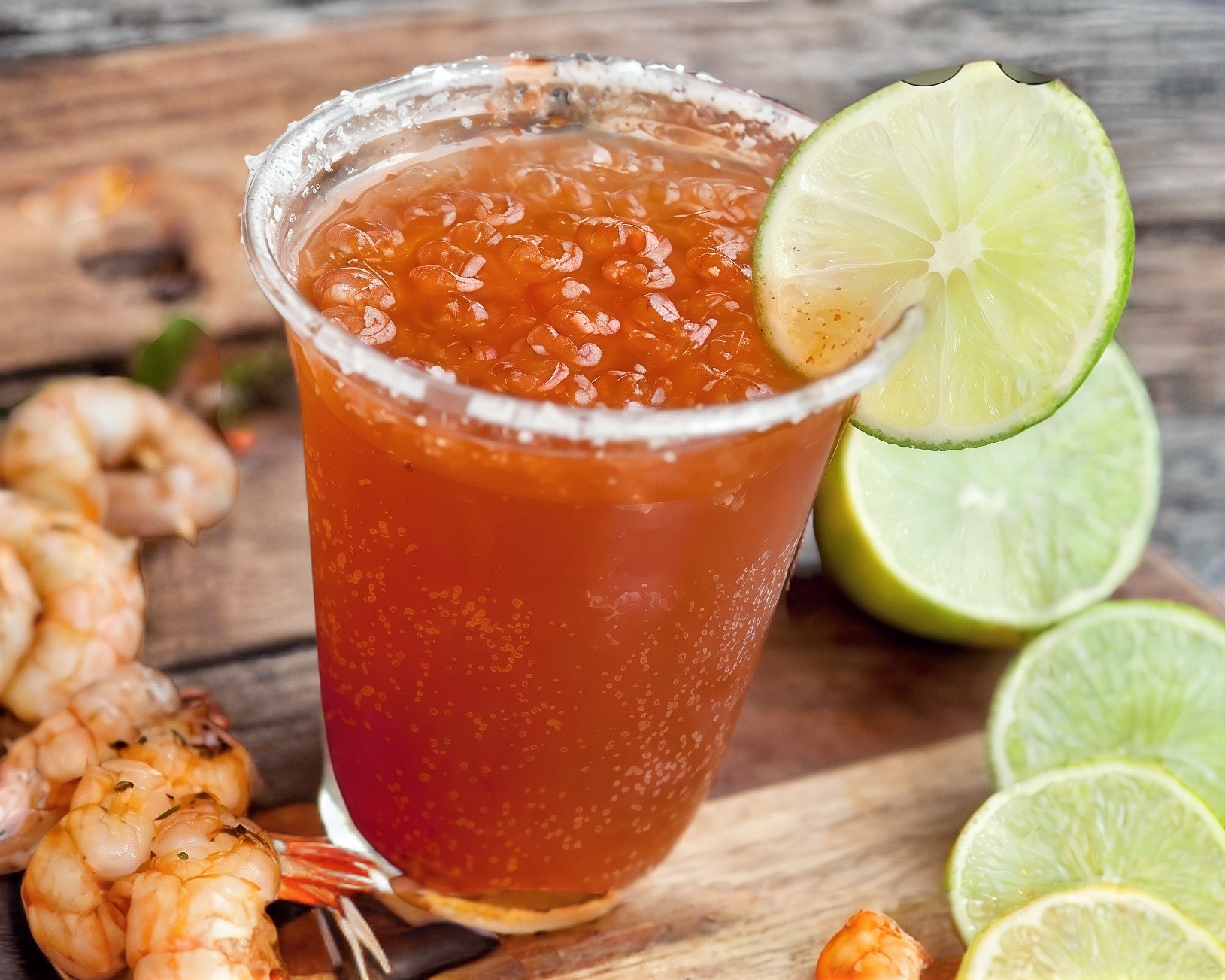 Michelada preparada con sus respectivas salsas, clamato sal y limón.