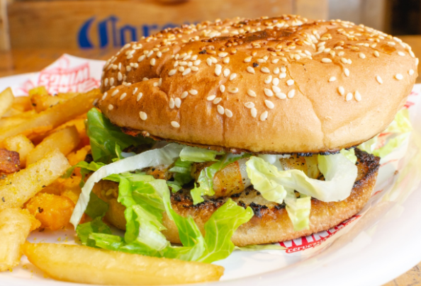 Pechuga de pollo premium bañada en salsa a tu elección con ensalada y papas a la francesa