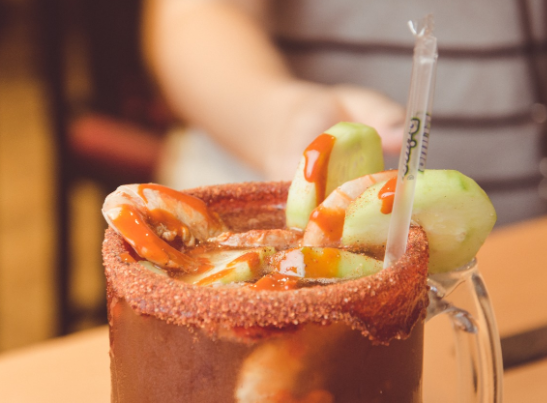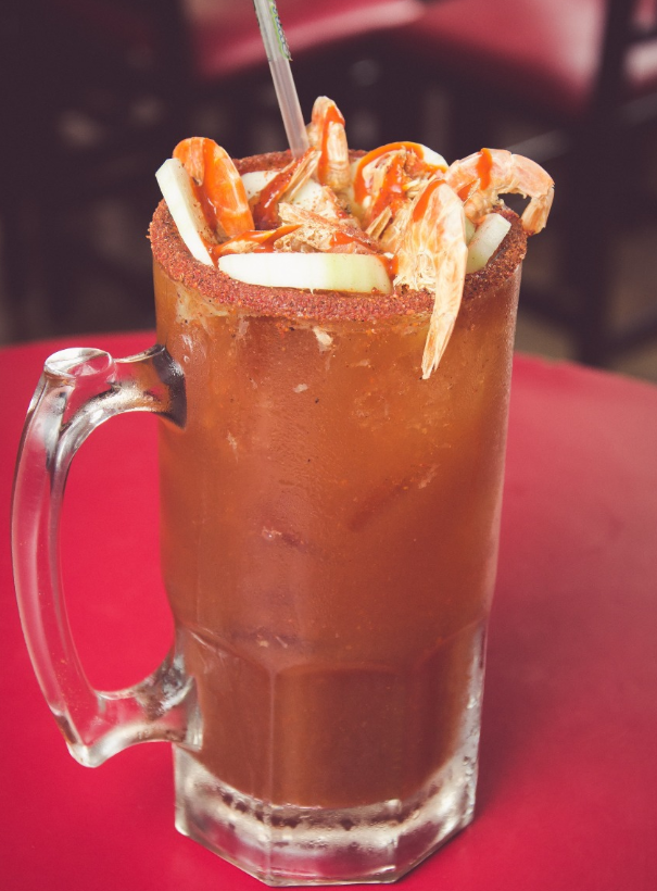 1 litro, sal, limon, clamato, pepino, camarón seco y cerveza de barril a tu eleccion