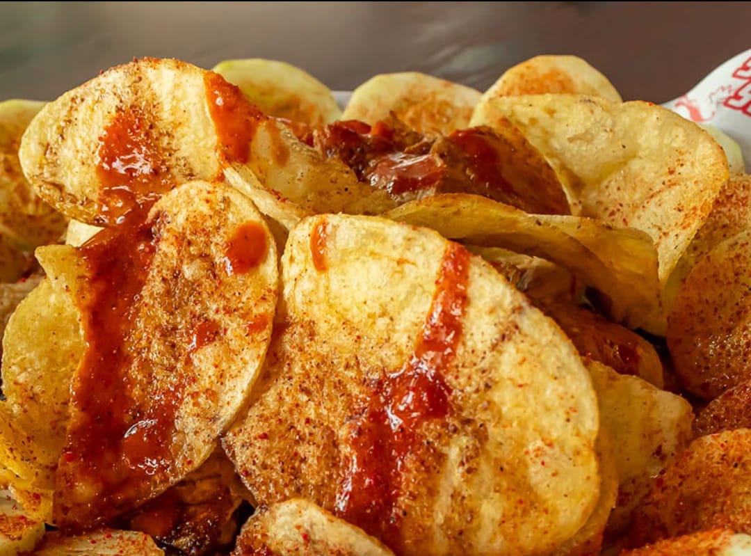 70 gramos de papas doradas, preparadas con sal, chile, limon y salsas negras