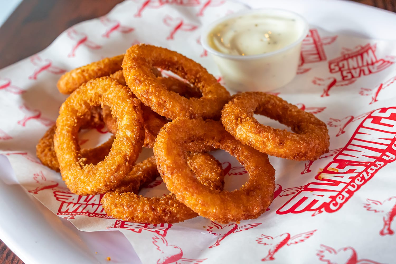 10 piezas de aros de cebolla empanizados, con aderezo ranch