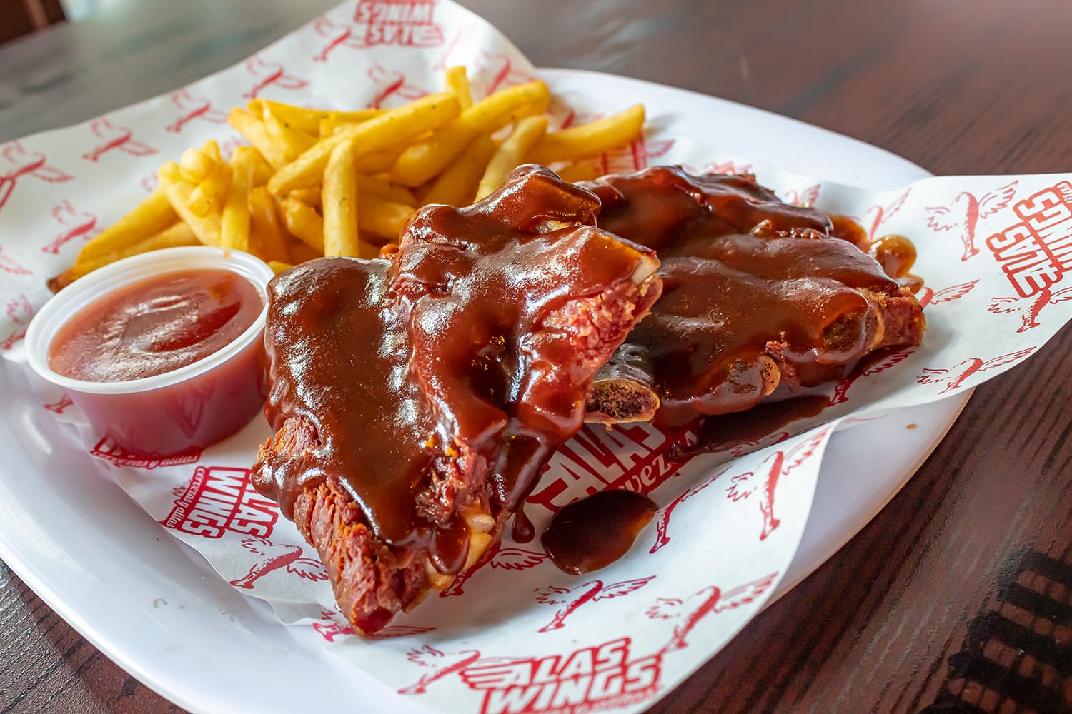 Costillas de Cerdo a la plancha con salsa a su eleccion, acompañadas de papas a la francesa