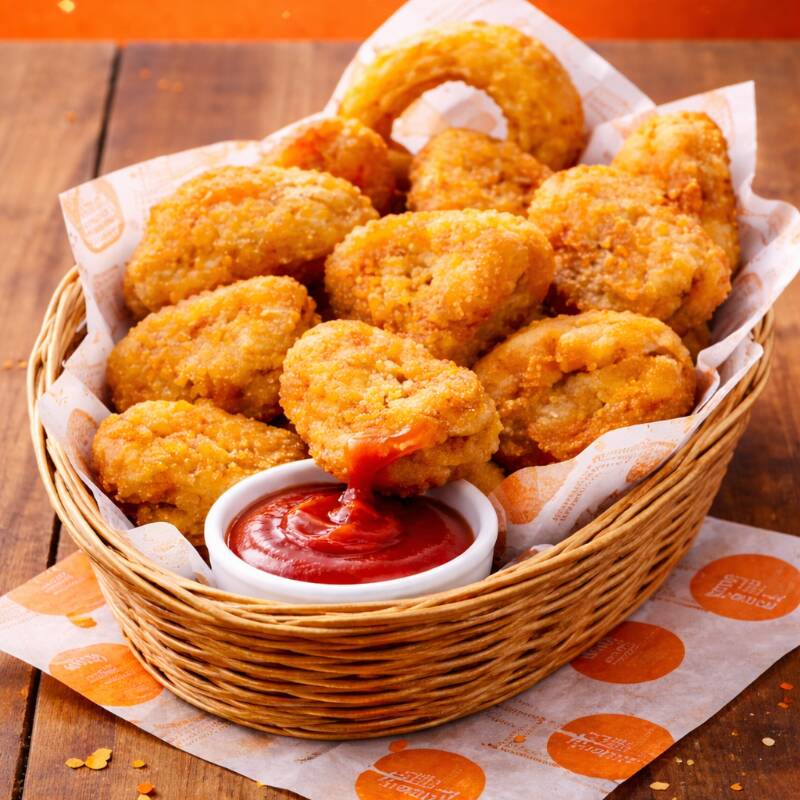 Nuggets de pollo crujientes por fuera y jugosos por dentro, dorados al momento; perfectos para compartir y acompañar con tu salsa favorita.