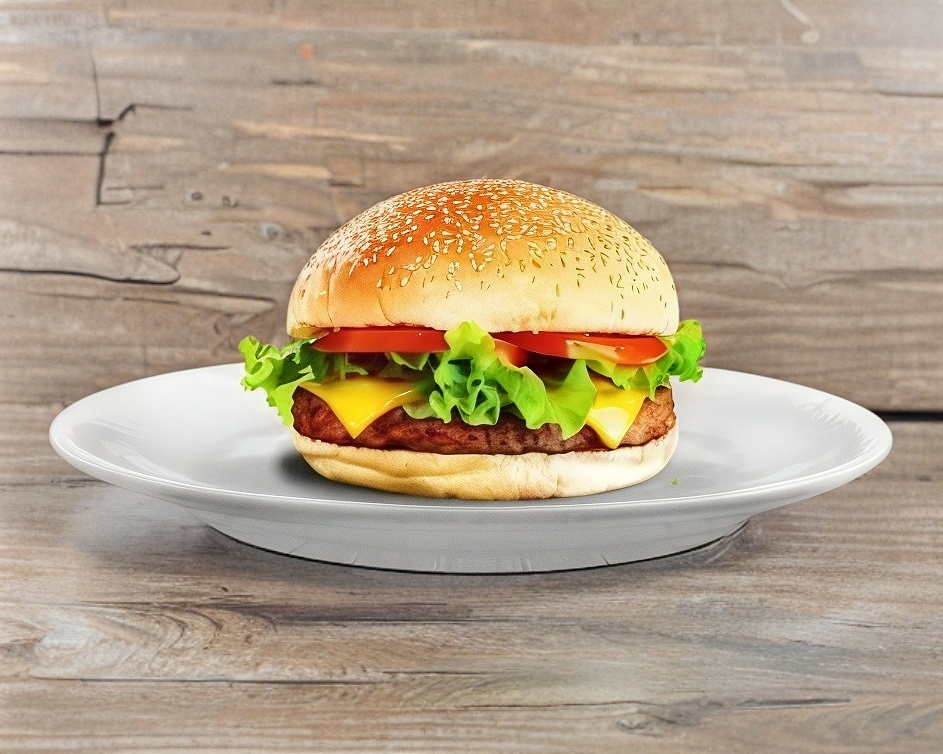 Hamburguesa con carne 100% de res, lechuga, jitomate y cubierta en queso americano.