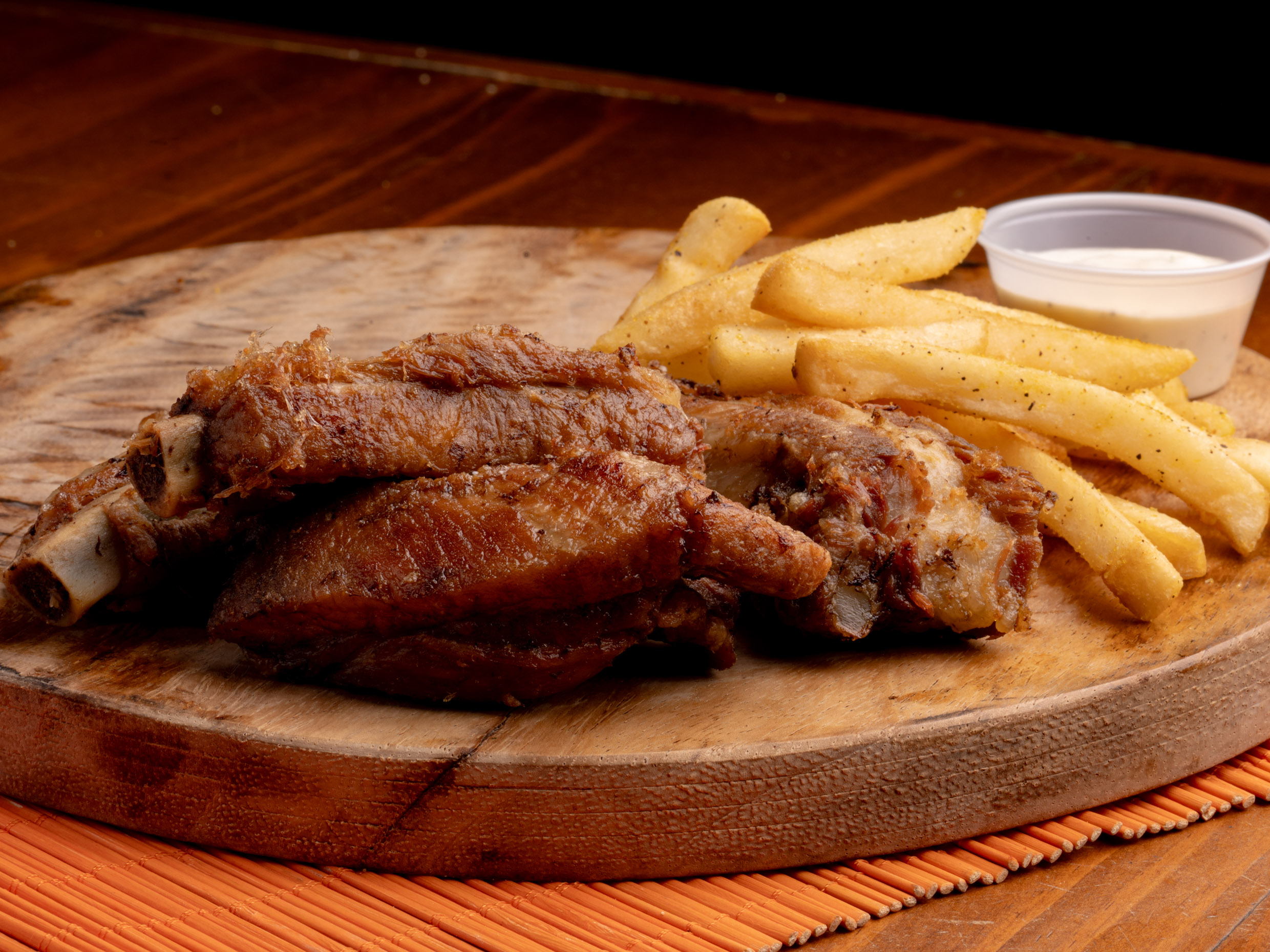 Bañada salsa a elegir acompañado de papa a la francesa y nuestro aderezo Ranch.